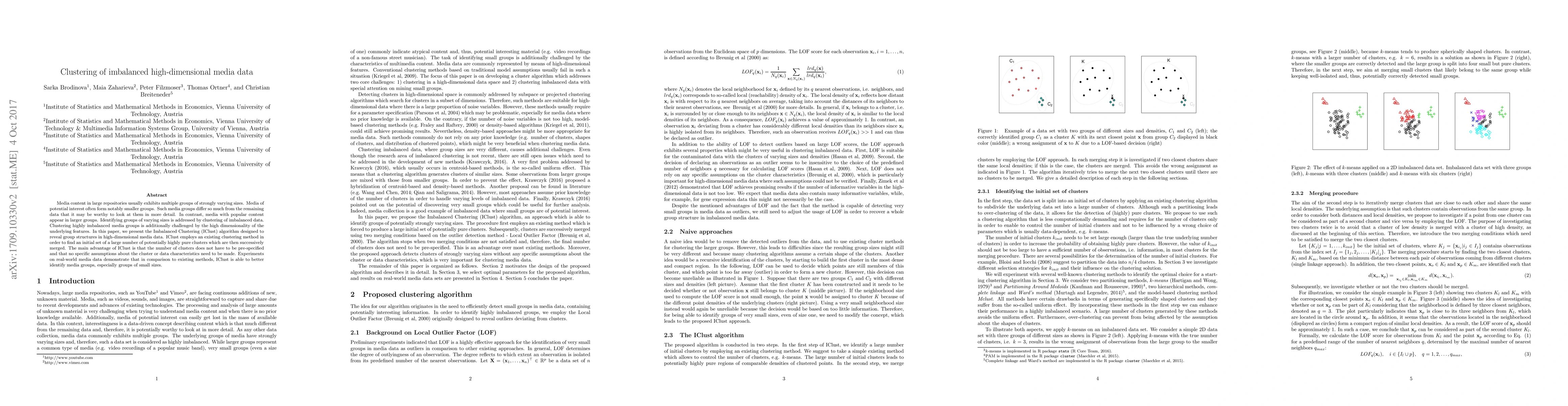 The paper introduces the Imbalanced Clustering (IClust) algorithm to identify groups of varying sizes in high-dimensional media data, addressing the challenge of imbalanced clustering. IClust dynamically merges a large initial set of clusters without pre-specification, outperforming existing methods in identifying smaller media groups.