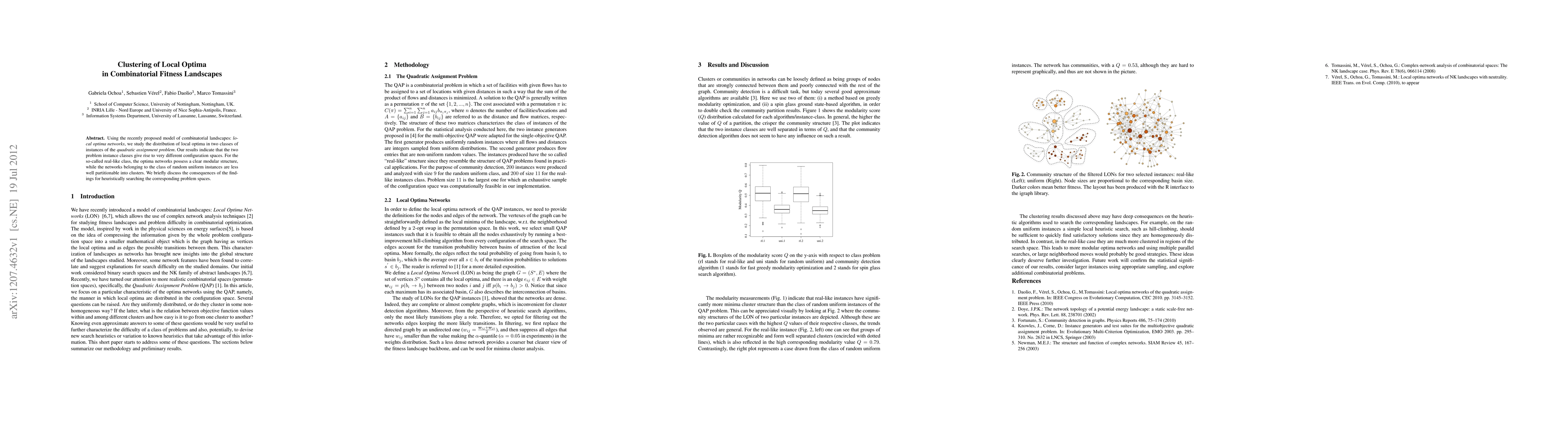 This paper investigates the clustering of local optima in combinatorial fitness landscapes using the quadratic assignment problem, revealing distinct configuration spaces for real-like and random uniform instances. The real-like class exhibits a modular structure in its optima networks, contrasting with the less separable networks of the random uniform class.