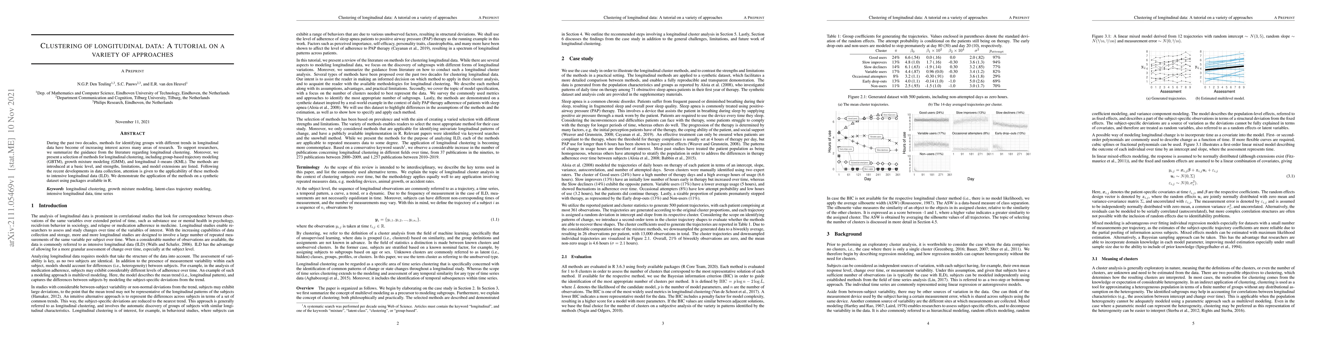 This paper provides a comprehensive tutorial on various clustering methods for longitudinal data, including group-based trajectory modeling, growth mixture modeling, and longitudinal k-means. It highlights the strengths, limitations, and extensions of these methods, with a focus on their application to intensive longitudinal data.