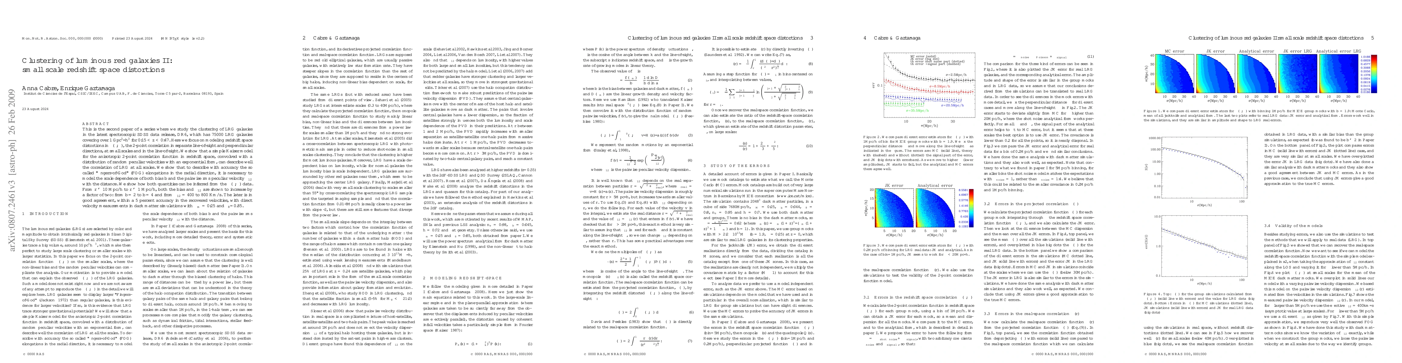 This paper explores the clustering of luminous red galaxies (LRG) in the SDSS DR6 dataset, focusing on redshift space distortions in the 2-point correlation function at small scales. It demonstrates that a Kaiser model with an exponential distribution of peculiar velocities can accurately describe LRG correlations, revealing significant scale-dependent increases in bias and peculiar velocity.