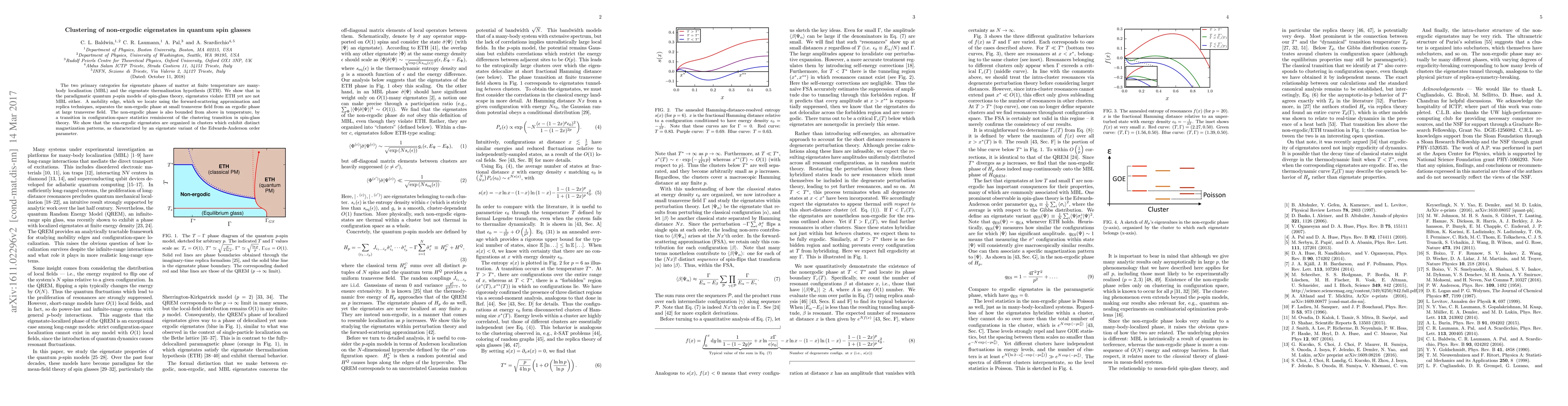 The two primary categories for eigenstate phases of matter at finite temperature are many-body localization (MBL) and the eigenstate thermalization hypothesis (ETH). We show that in the paradigmatic quantum $p$-spin models of spin-glass theory, eigenstates violate ETH yet are not MBL either. A mobility edge, which we locate to leading order in $1/p$ using the forward-scattering approximation and replica techniques, separates the non-ergodic phase at small transverse field from an ergodic phase at large transverse field. The non-ergodic phase is also bounded from above in temperature, by a transition in configuration-space statistics reminiscent of the clustering transition in spin-glass theory. We show that the non-ergodic eigenstates are organized in clusters which exhibit distinct magnetization patterns, as characterized by an eigenstate variant of the Edwards-Anderson order parameter.
