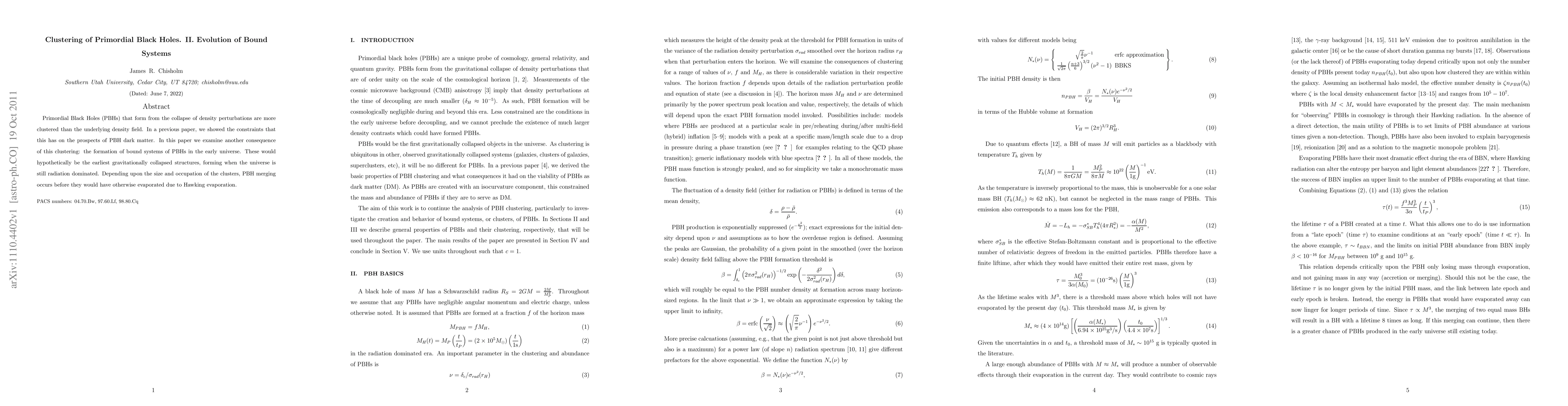 Primordial Black Holes form in clusters that merge before they evaporate due to Hawking radiation, potentially creating the earliest gravitationally collapsed structures in the universe.
