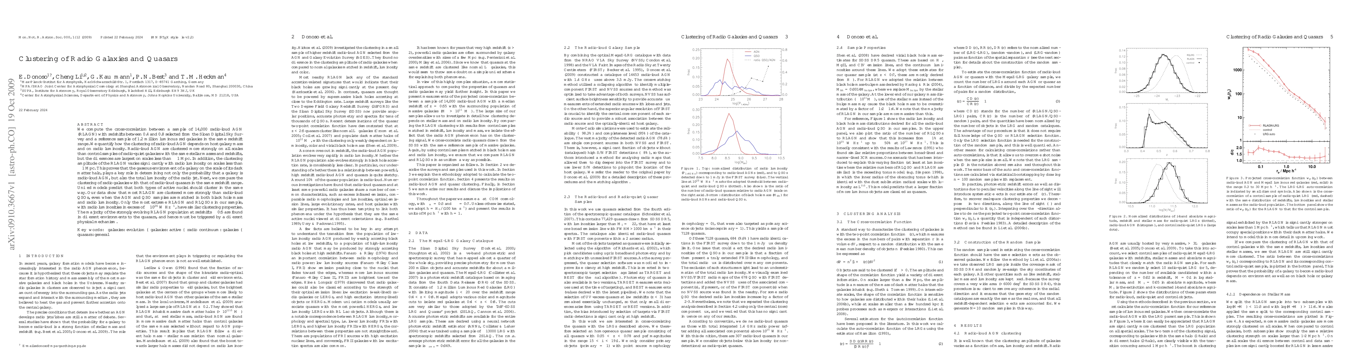 We compute the cross-correlation between a sample of 14,000 radio-loud AGN (RLAGN) with redshifts between 0.4 and 0.8 selected from the Sloan Digital Sky Survey and a reference sample of 1.2 million luminous red galaxies in the same redshift range. We quantify how the clustering of radio-loud AGN depends on host galaxy mass and on radio luminosity. Radio-loud AGN are clustered more strongly on all scales than control samples of radio-quiet galaxies with the same stellar masses and redshifts, but the differences are largest on scales less than 1 Mpc. In addition, the clustering amplitude of the RLAGN varies significantly with radio luminosity on scales less than 1 Mpc. This proves that the gaseous environment of a galaxy on the scale of its dark matter halo, plays a key role in determining not only the probability that a galaxy is radio-loud AGN, but also the total luminosity of the radio jet. Next, we compare the clustering of radio galaxies with that of radio-loud quasars in the same redshift range. Unified models predict that both types of active nuclei should cluster in the same way. Our data show that most RLAGN are clustered more strongly than radio-loud QSOs, even when the AGN and QSO samples are matched in both black hole mass and radio luminosity. Only the most extreme RLAGN and RLQSOs in our sample, with radio luminosities in excess of 10^26 W/Hz, have similar clustering properties. The majority of the strongly evolving RLAGN population at z~0.5 are found in different environments to the quasars, and hence must be triggered by a different physical mechanism.