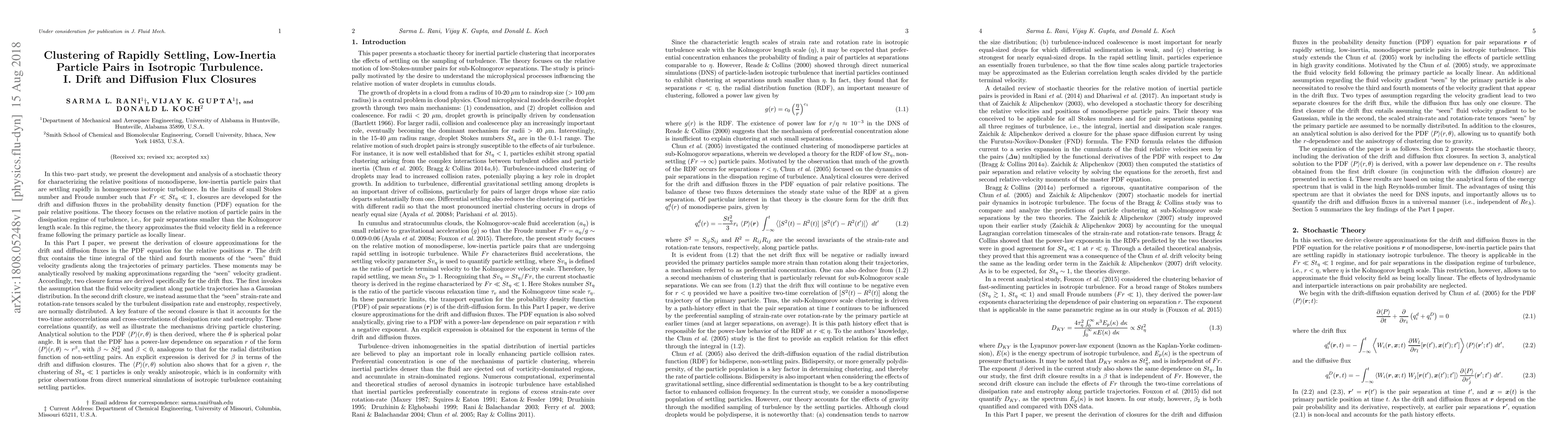 A stochastic theory for characterizing the relative positions of monodisperse, low-inertia particle pairs in homogeneous isotropic turbulence was developed.