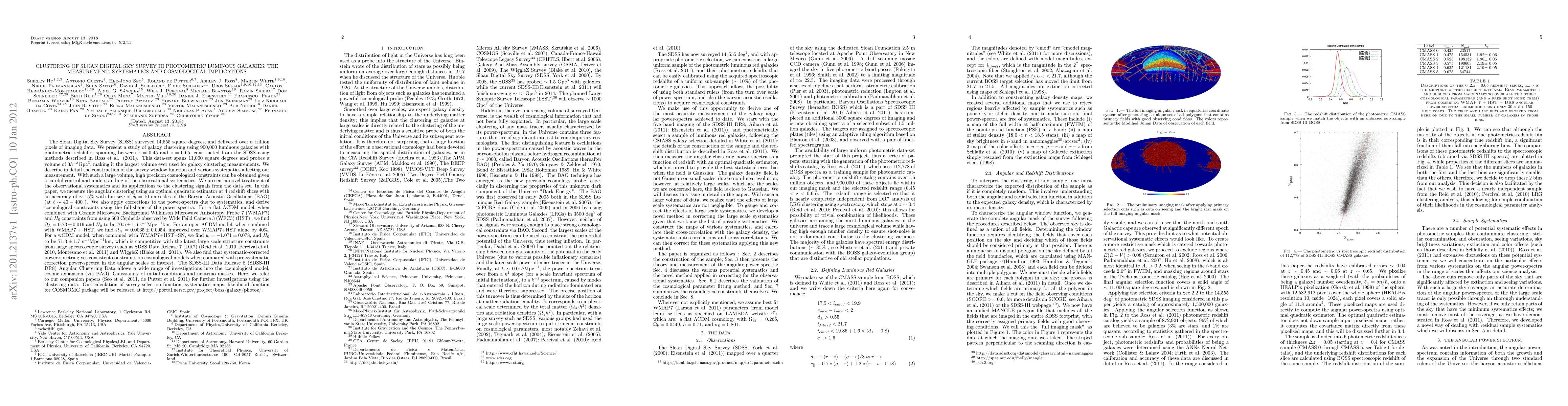 This paper analyzes the clustering of 900,000 luminous galaxies from the Sloan Digital Sky Survey III, measuring angular clustering and providing novel systematics treatment. It derives cosmological parameters including $\Omega_\Lambda = 0.73 \pm 0.019$ and $H_0 = 70.5 \pm 1.6$ km/s/Mpc, improving constraints on the open Lambda CDM model and competitive with other large-scale structure surveys.