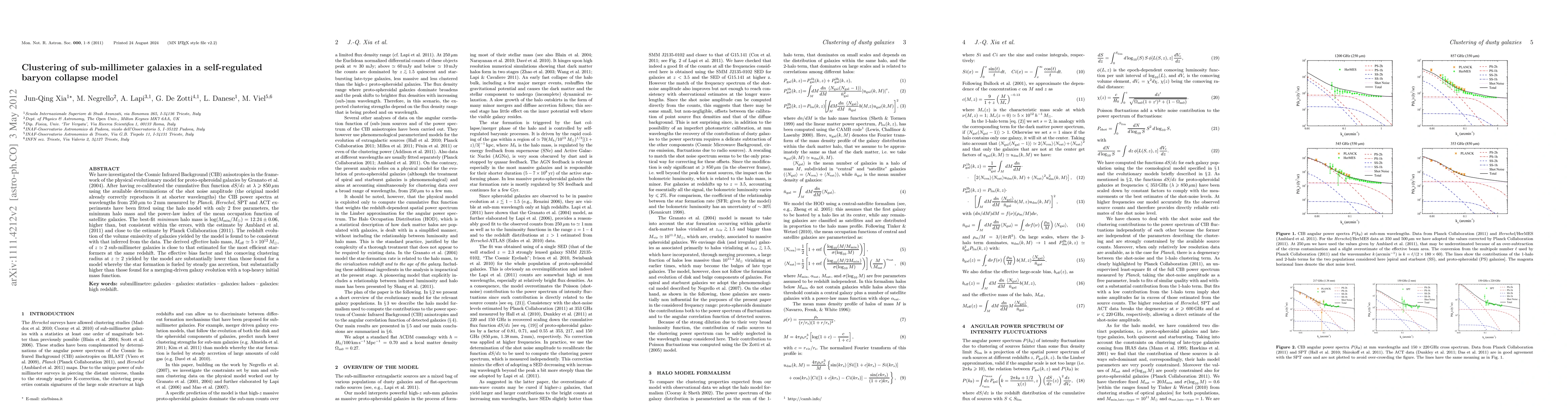 This study investigates Cosmic Infrared Background (CIB) anisotropies using a self-regulated baryon collapse model, finding a best-fit minimum halo mass of $12.24 \pm 0.06 \times 10^{12}\,M_\odot$ for $z\simeq 2$ sub-millimeter galaxies, which aligns with efficient star-forming galaxies. The model's clustering properties differ significantly from steady gas accretion and merging-driven evolution scenarios.
