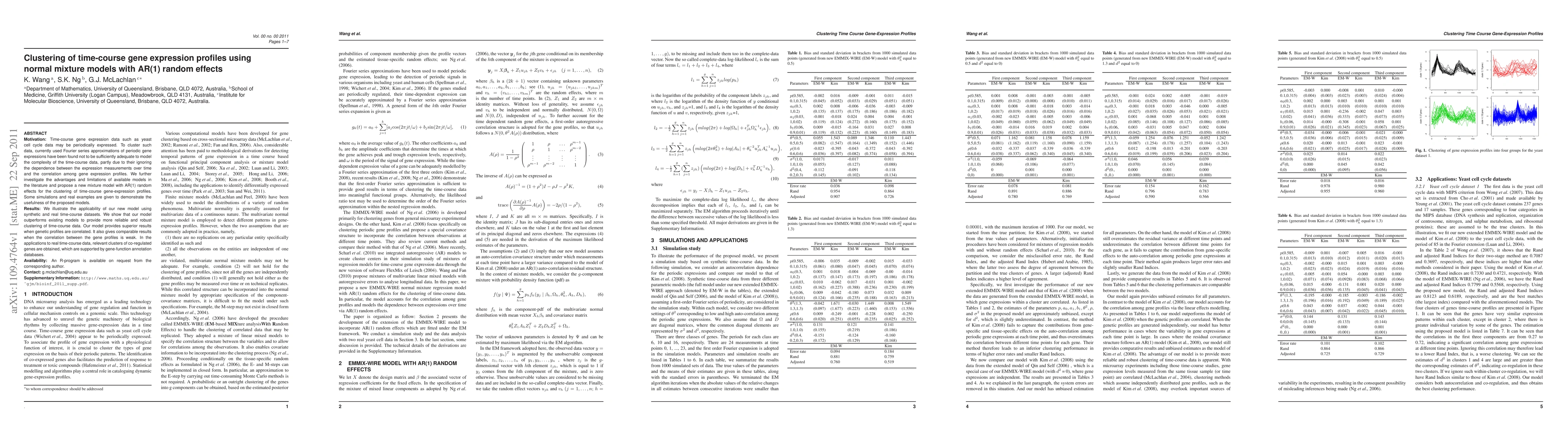 This paper proposes a new normal mixture model with AR(1) random effects for clustering time-course gene expression profiles, addressing the inadequacies of Fourier series approximations by considering temporal dependencies and correlations among gene profiles. Simulations and real data examples demonstrate the effectiveness of the proposed model.