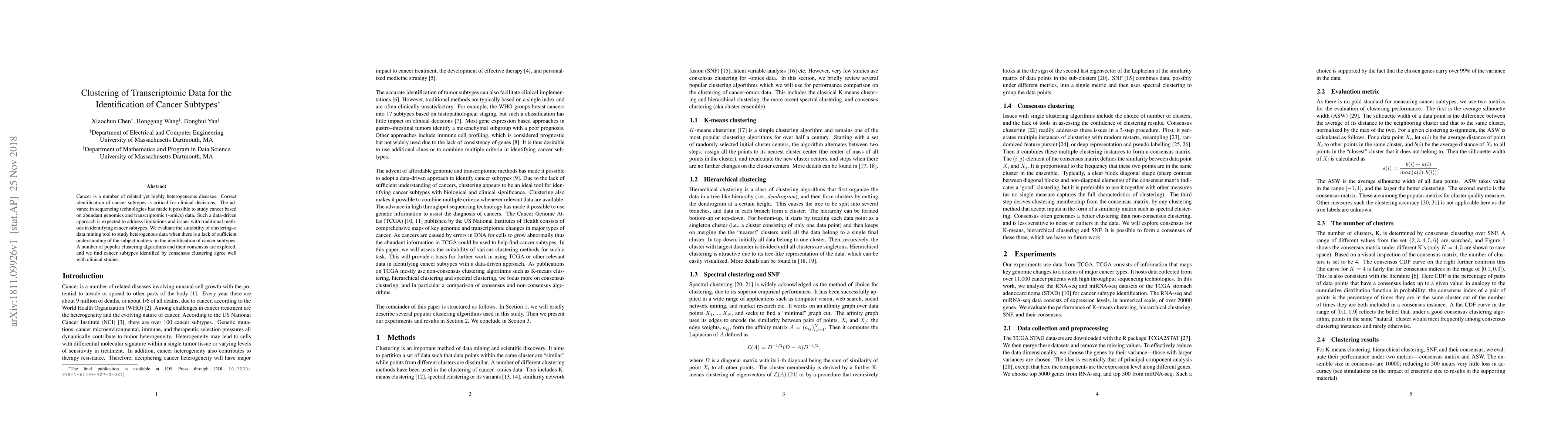 This paper evaluates clustering algorithms for identifying cancer subtypes using transcriptomic data, finding that consensus clustering aligns well with clinical findings, offering a promising data-driven approach to address the heterogeneity in cancer.