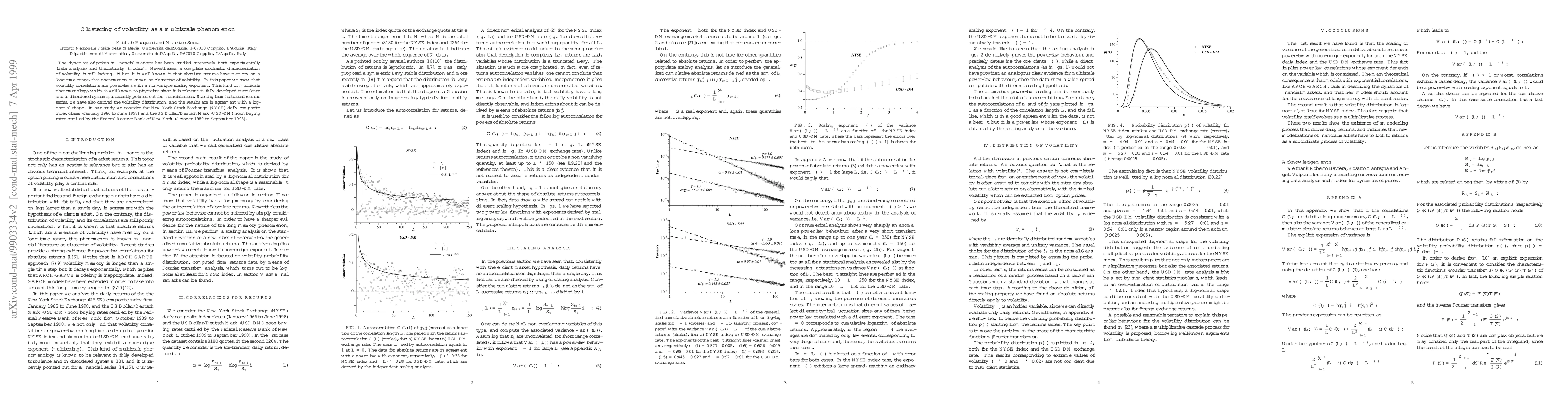 The dynamics of prices in financial markets has been studied intensively both experimentally (data analysis) and theoretically (models). Nevertheless, a complete stochastic characterization of volatility is still lacking. What it is well known is that absolute returns have memory on a long time range, this phenomenon is known as clustering of volatility. In this paper we show that volatility correlations are power-laws with a non-unique scaling exponent. This kind of multiscale phenomenology, which is well known to physicists since it is relevant in fully developed turbulence and in disordered systems, is recently pointed out for financial series. Starting from historical returns series, we have also derived the volatility distribution, and the results are in agreement with a log-normal shape. In our study we consider the New York Stock Exchange (NYSE) daily composite index closes (January 1966 to June 1998) and the US Dollar/Deutsch Mark (USD-DM) noon buying rates certified by the Federal Reserve Bank of New York (October 1989 to September 1998).