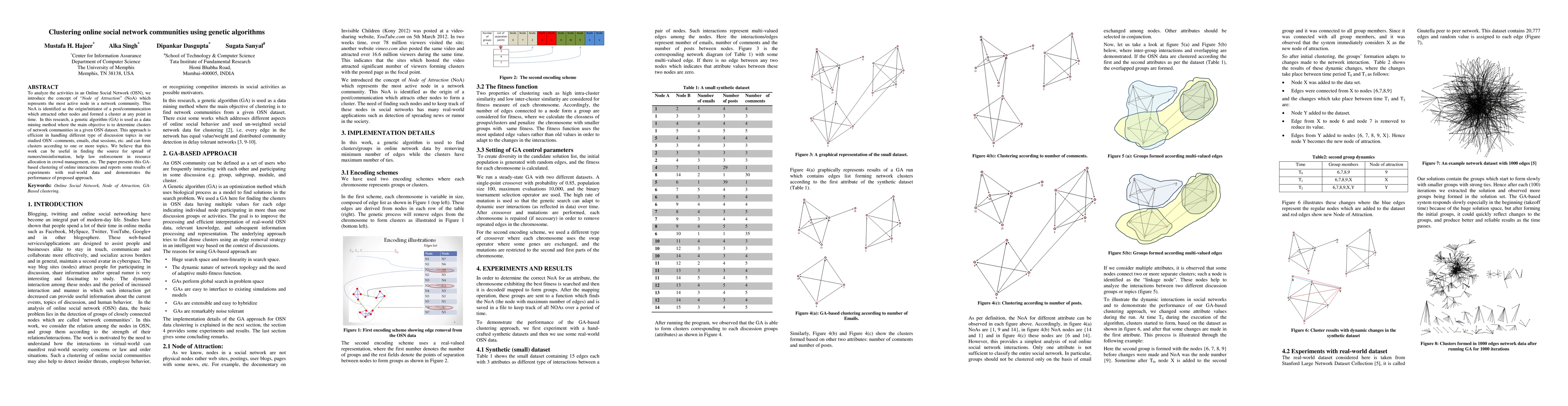 To analyze the activities in an Online Social network (OSN), we introduce the concept of "Node of Attraction" (NoA) which represents the most active node in a network community. This NoA is identified as the origin/initiator of a post/communication which attracted other nodes and formed a cluster at any point in time. In this research, a genetic algorithm (GA) is used as a data mining method where the main objective is to determine clusters of network communities in a given OSN dataset. This approach is efficient in handling different type of discussion topics in our studied OSN - comments, emails, chat expressions, etc. and can form clusters according to one or more topics. We believe that this work can be useful in finding the source for spread of this GA-based clustering of online interactions and reports some results of experiments with real-world data and demonstrates the performance of proposed approach.