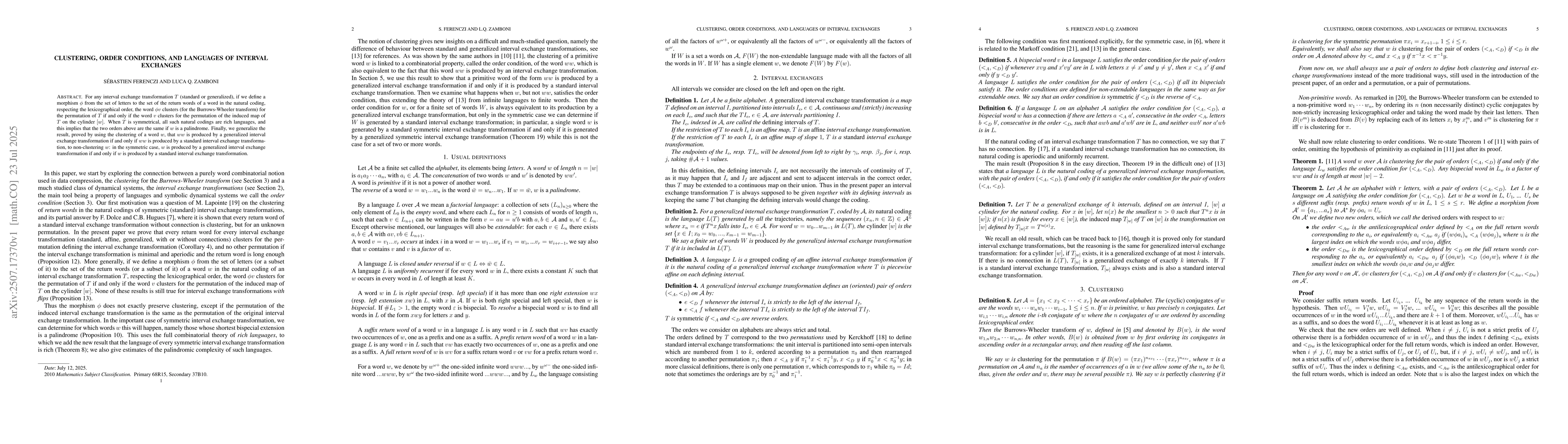 For any interval exchange transformation $T$ (standard or generalized), if we define a morphism $\phi$ from the set of letters to the set of the return words of a word in the natural coding, respecting the lexicographical order, the word $\phi v$ clusters (for the Burrows-Wheeler transform) for the permutation of $T$ if and only if the word $v$ clusters for the permutation of the induced map of $T$ on the cylinder $[w]$. When $T$ is symmetrical, all such natural codings are rich languages, and this implies that the two orders above are the same if $w$ is a palindrome. Finally, we generalize the result, proved by using the clustering of a word $w$, that $ww$ is produced by a generalized interval exchange transformation if and only if $ww$ is produced by a standard interval exchange transformation, to non-clustering $w$: in the symmetric case, $w$ is produced by a generalized interval exchange transformation if and only if $w$ is produced by a standard interval exchange transformation.