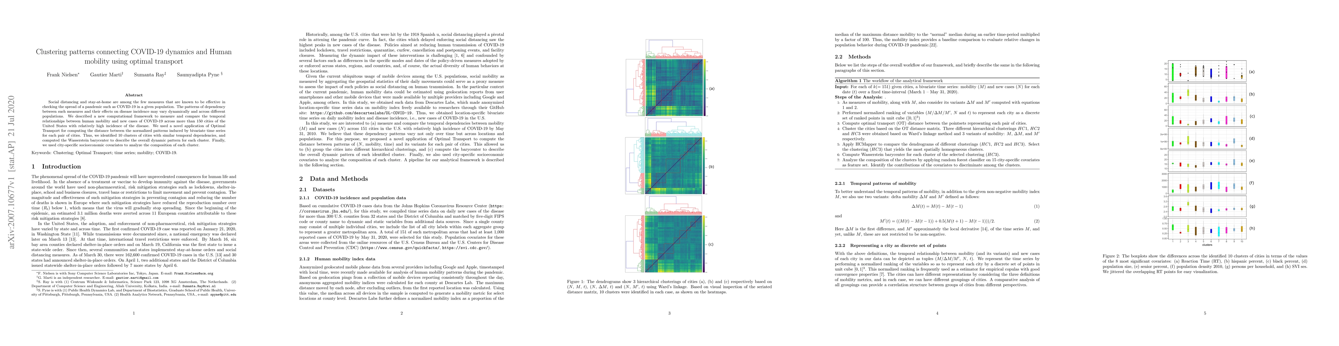 Social distancing and stay-at-home are among the few measures that are known to be effective in checking the spread of a pandemic such as COVID-19 in a given population. The patterns of dependency between such measures and their effects on disease incidence may vary dynamically and across different populations. We described a new computational framework to measure and compare the temporal relationships between human mobility and new cases of COVID-19 across more than 150 cities of the United States with relatively high incidence of the disease. We used a novel application of Optimal Transport for computing the distance between the normalized patterns induced by bivariate time series for each pair of cities. Thus, we identified 10 clusters of cities with similar temporal dependencies, and computed the Wasserstein barycenter to describe the overall dynamic pattern for each cluster. Finally, we used city-specific socioeconomic covariates to analyze the composition of each cluster.