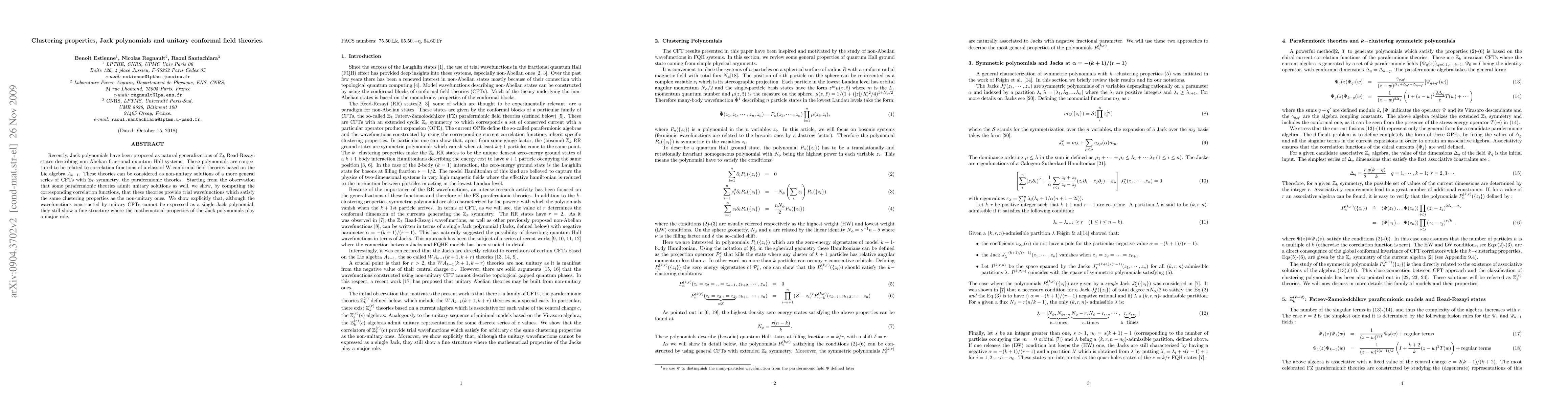 This paper explores the relationship between Jack polynomials and unitary conformal field theories (CFTs), demonstrating that non-unitary parafermionic theories, which use Jack polynomials, share clustering properties with their unitary counterparts, despite not being expressible as single Jack polynomials themselves. The study highlights the fine structure in unitary CFT wavefunctions influenced by the mathematical properties of Jack polynomials.