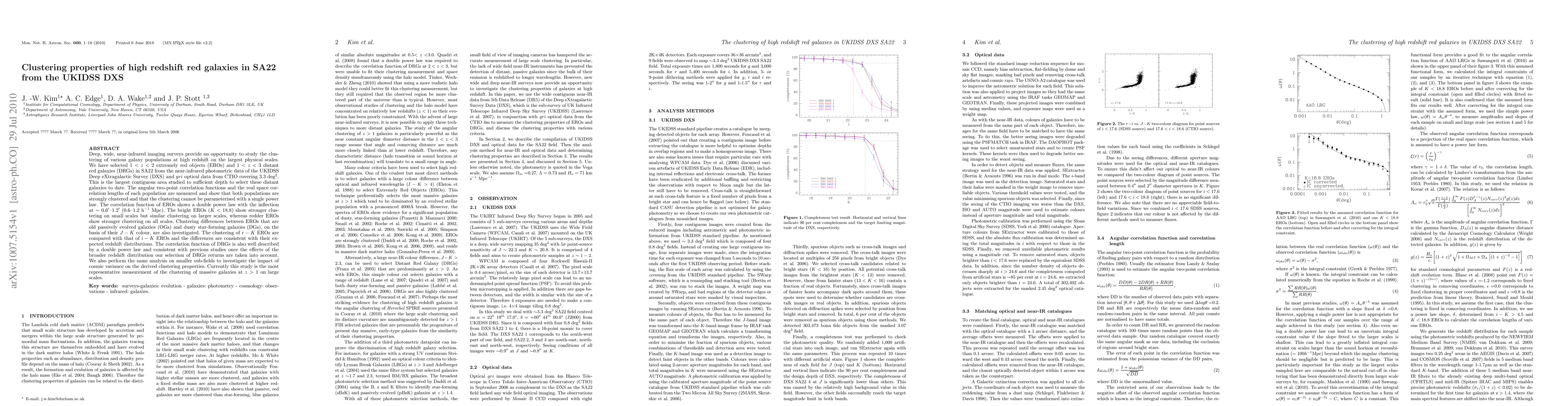 This study used deep, wide-field near-infrared imaging from the UKIDSS DXS and optical data from CTIO to select and analyze high redshift red galaxies, specifically extremely red objects (EROs) and distant red galaxies (DRGs) in the SA22 field.