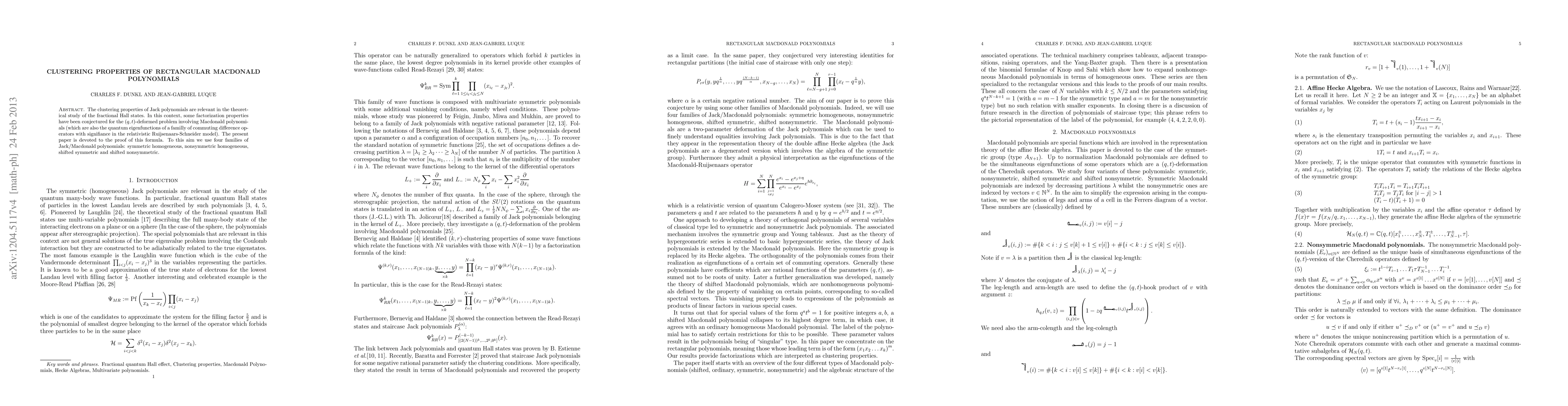This paper proves conjectured factorization properties for $(q,t)$-deformed Macdonald polynomials, focusing on their clustering behavior, which is significant for theoretical studies of fractional Hall states. The proof utilizes four families of Jack/Macdonald polynomials: symmetric homogeneous, nonsymmetric homogeneous, shifted symmetric, and shifted nonsymmetric.
