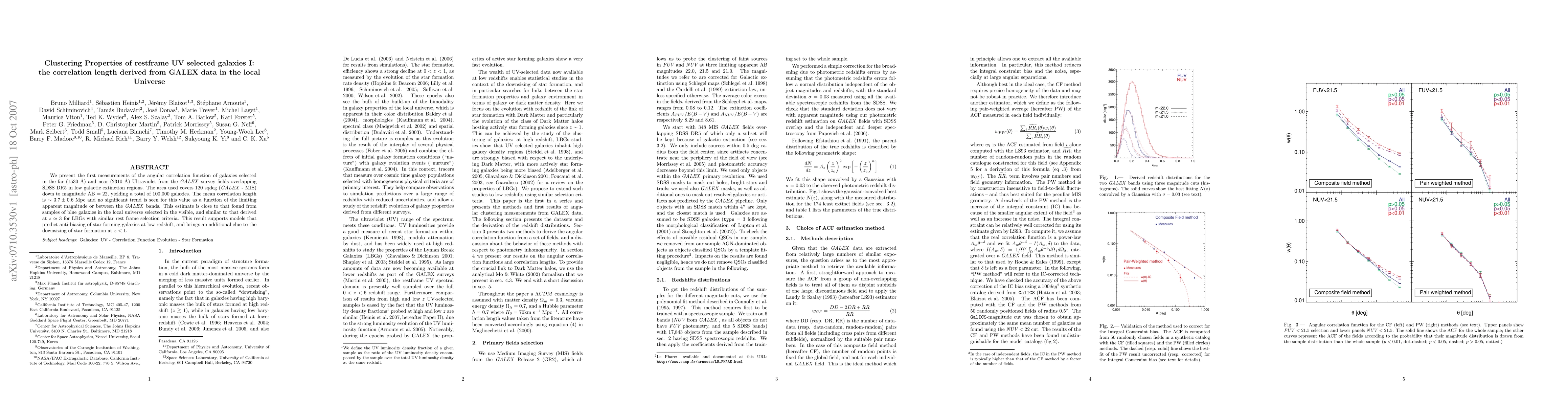 Researchers measured the clustering properties of UV-selected galaxies in the local Universe, finding a mean correlation length of 3.7 Mpc with no significant trend depending on magnitude or band.