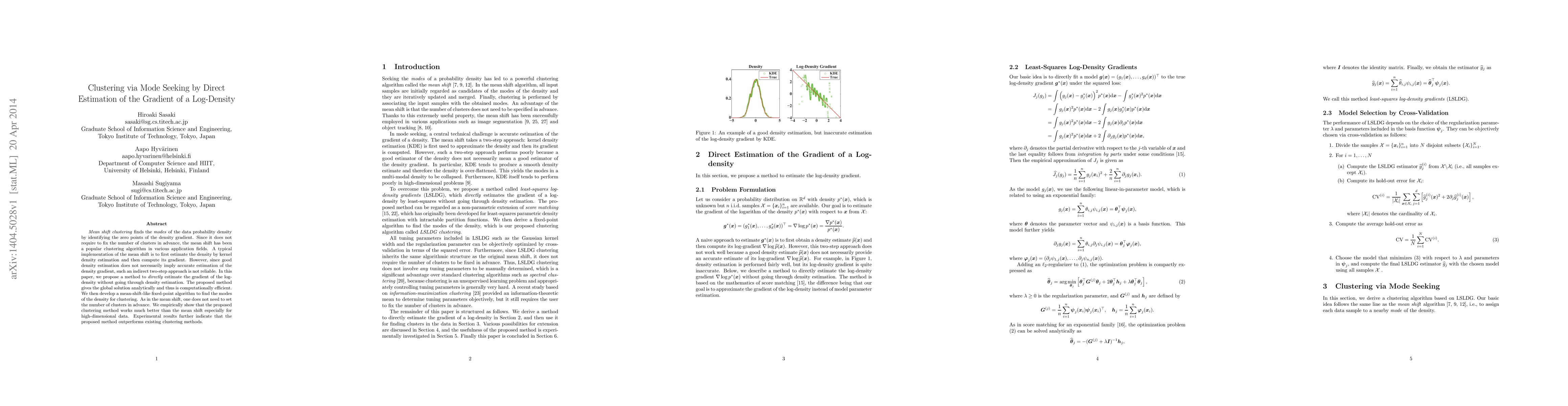 This paper proposes a novel clustering method that directly estimates the gradient of the log-density for mean shift clustering, bypassing the unreliable two-step density estimation approach. The method is shown to be more effective and computationally efficient, especially for high-dimensional data, outperforming existing clustering techniques.