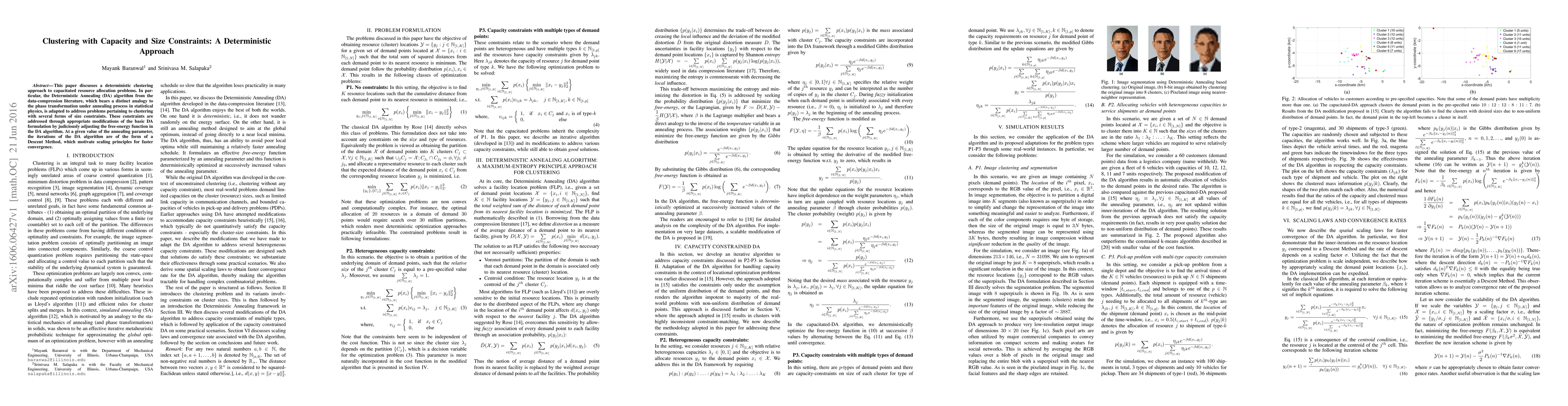 This paper discusses a deterministic clustering approach to capacitated resource allocation problems. In particular, the Deterministic Annealing (DA) algorithm from the data-compression literature, which bears a distinct analogy to the phase transformation under annealing process in statistical physics, is adapted to address problems pertaining to clustering with several forms of size constraints. These constraints are addressed through appropriate modifications of the basic DA formulation by judiciously adjusting the free-energy function in the DA algorithm. At a given value of the annealing parameter, the iterations of the DA algorithm are of the form of a Descent Method, which motivate scaling principles for faster convergence.