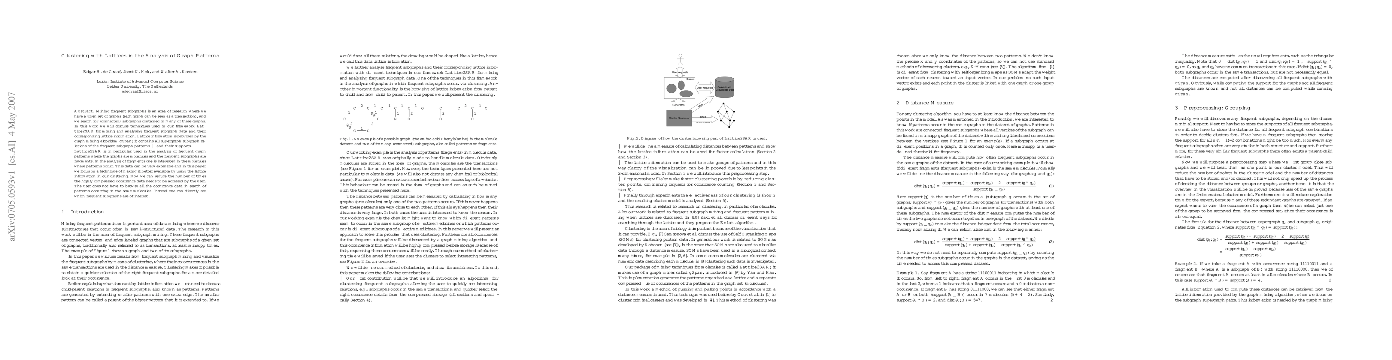 This paper explores techniques in the Lattice2SAR framework for mining and analyzing frequent subgraphs using lattice information from the gSpan algorithm. It focuses on clustering to efficiently manage extensive data on molecular fragments, reducing the need for users to manually search through occurrence data.