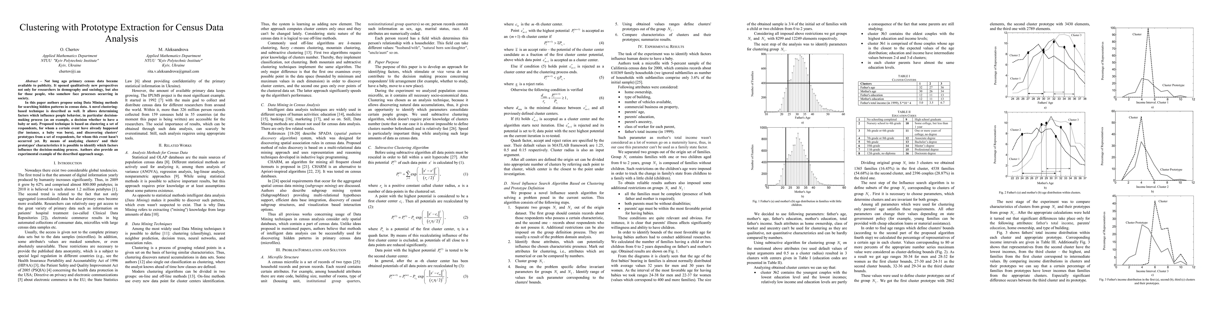 Not long ago primary census data became available to publicity. It opened qualitatively new perspectives not only for researchers in demography and sociology, but also for those people, who somehow face processes occurring in society. In this paper authors propose using Data Mining methods for searching hidden patterns in census data. A novel clustering-based technique is described as well. It allows determining factors which influence people behavior, in particular decision-making process (as an example, a decision whether to have a baby or not). Proposed technique is based on clustering a set of respondents, for whom a certain event have already happened (for instance, a baby was born), and discovering clusters' prototypes from a set of respondents, for whom this event hasn't occurred yet. By means of analyzing clusters' and their prototypes' characteristics it is possible to identify which factors influence the decision-making process. Authors also provide an experimental example of the described approach usage.