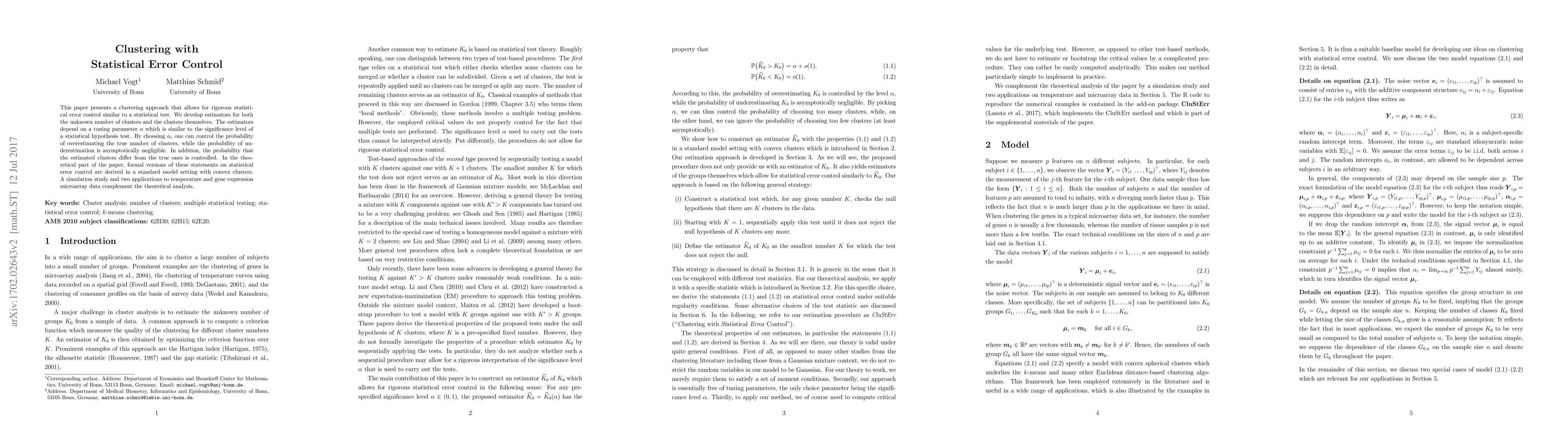Researchers developed a clustering method with statistical error control, allowing for precise estimation of cluster numbers and properties. The approach controls the probability of overestimation and underestimation, offering a robust solution for high-dimensional data analysis.
