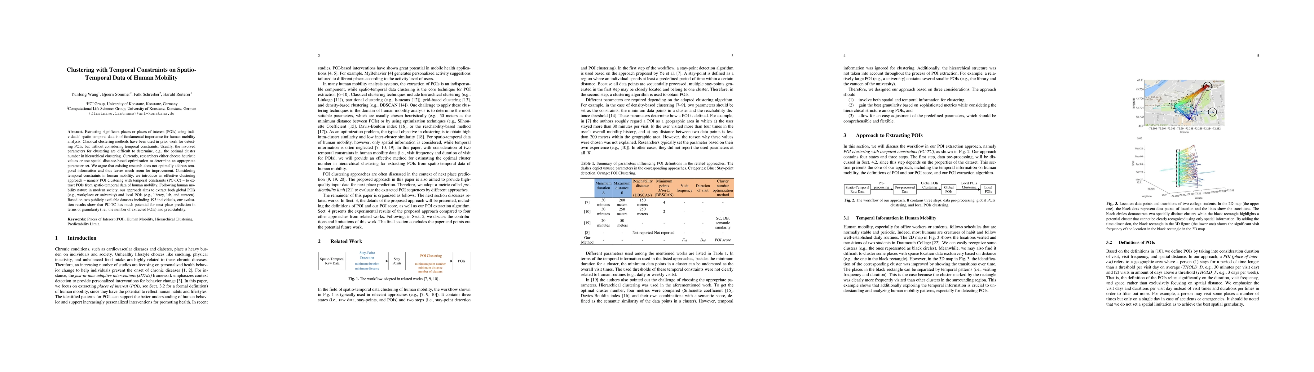 This paper introduces a new clustering approach, POI clustering with temporal constraints (PC-TC), to extract significant places from human mobility data by considering temporal factors. The proposed method outperforms existing clustering techniques by better addressing temporal information, leading to improved place prediction accuracy.