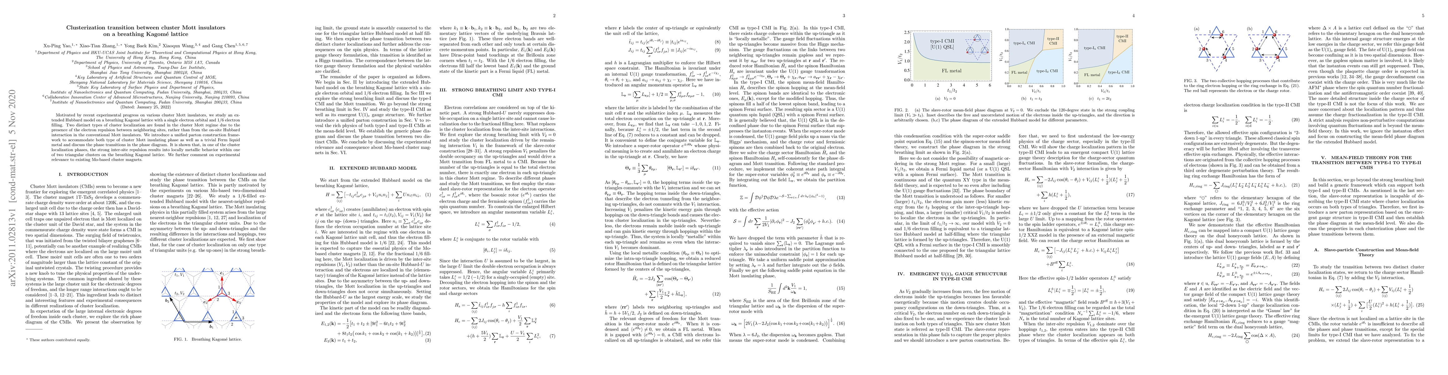 This paper investigates an extended Hubbard model on a breathing Kagome lattice, identifying two types of cluster Mott insulating phases driven by inter-site electron repulsion. It introduces a unified parton framework to analyze these phases and discusses the phase transitions, highlighting locally metallic behavior in one of the cluster phases.