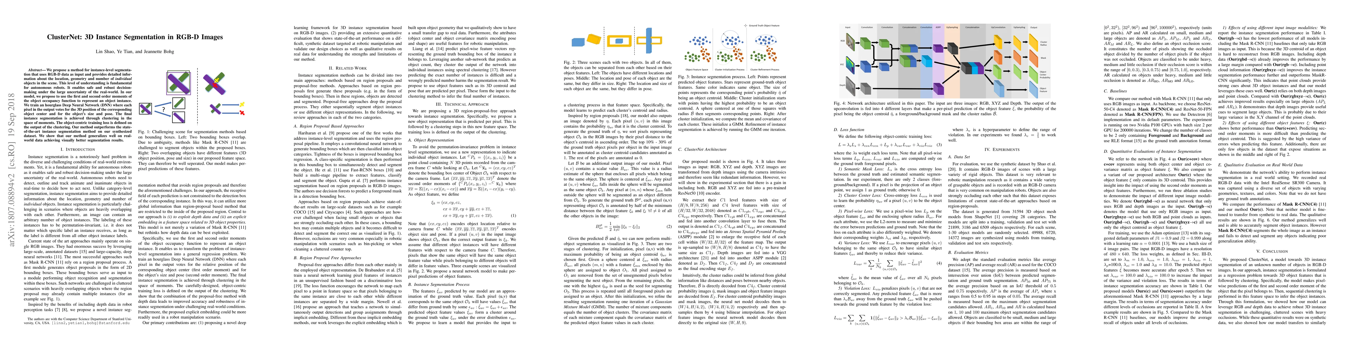 A new method called ClusterNet is proposed for 3D instance segmentation in RGB-D images, achieving detailed object information and outperforming state-of-the-art methods on both synthetic and real-world data.