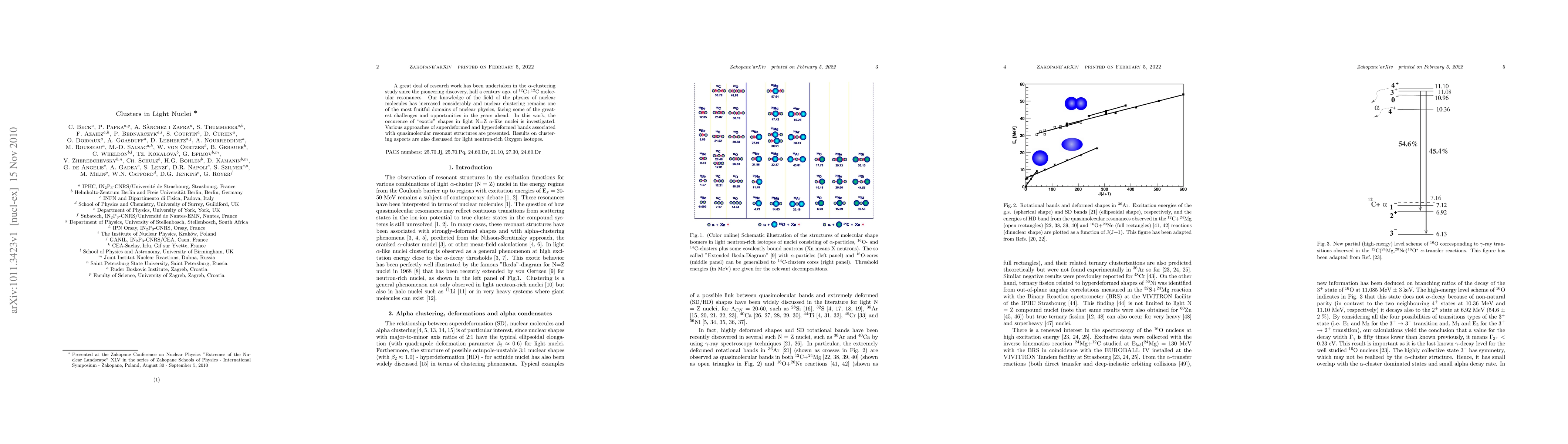This research investigates exotic shapes in light N=Z alpha-like nuclei using various approaches to superdeformed and hyperdeformed bands associated with quasimolecular resonant structures. It discusses clustering aspects for light neutron-rich Oxygen isotopes, shedding new light on the physics of nuclear molecules.