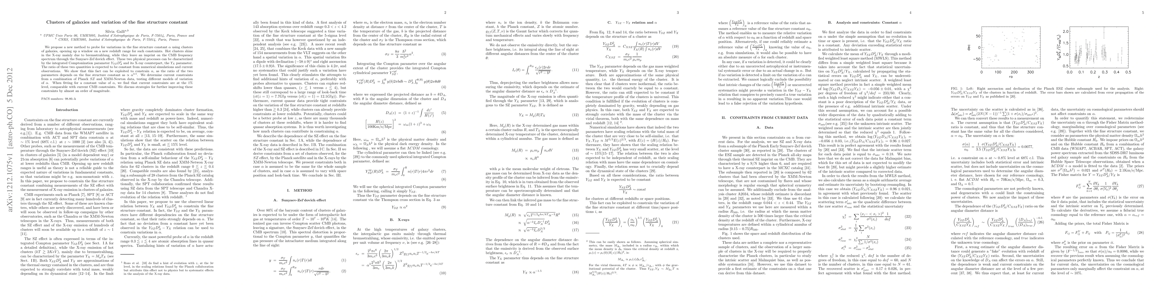 This paper proposes a novel method to investigate variations in the fine structure constant using clusters of galaxies, leveraging X-ray and CMB data. Current constraints on alpha are at the 1% level, comparable to CMB constraints, and strategies for improving these by nearly an order of magnitude are discussed.