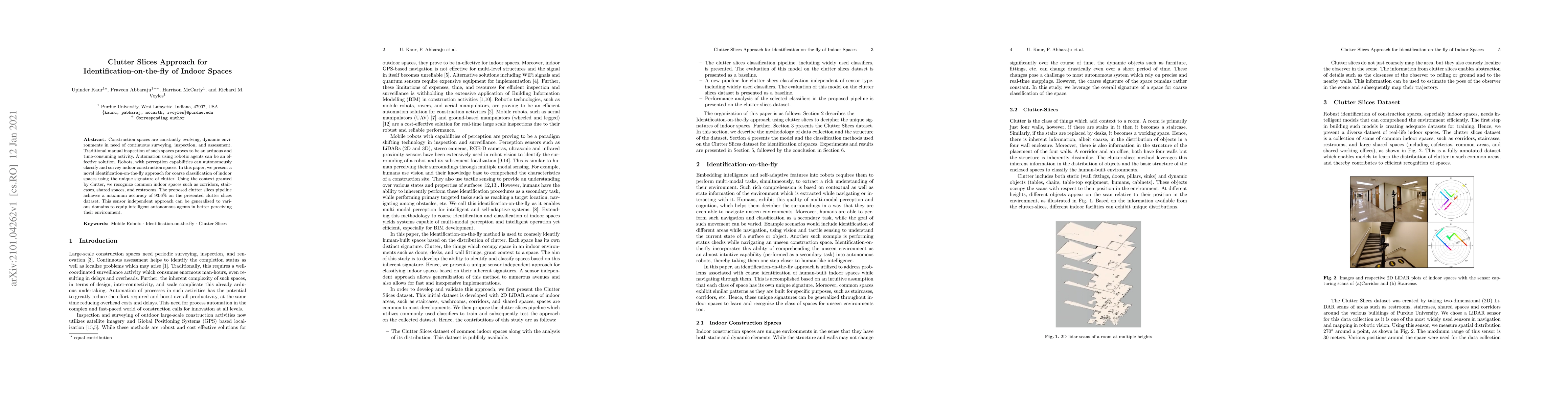 Construction spaces are constantly evolving, dynamic environments in need of continuous surveying, inspection, and assessment. Traditional manual inspection of such spaces proves to be an arduous and time-consuming activity. Automation using robotic agents can be an effective solution. Robots, with perception capabilities can autonomously classify and survey indoor construction spaces. In this paper, we present a novel identification-on-the-fly approach for coarse classification of indoor spaces using the unique signature of clutter. Using the context granted by clutter, we recognize common indoor spaces such as corridors, staircases, shared spaces, and restrooms. The proposed clutter slices pipeline achieves a maximum accuracy of 93.6% on the presented clutter slices dataset. This sensor independent approach can be generalized to various domains to equip intelligent autonomous agents in better perceiving their environment.