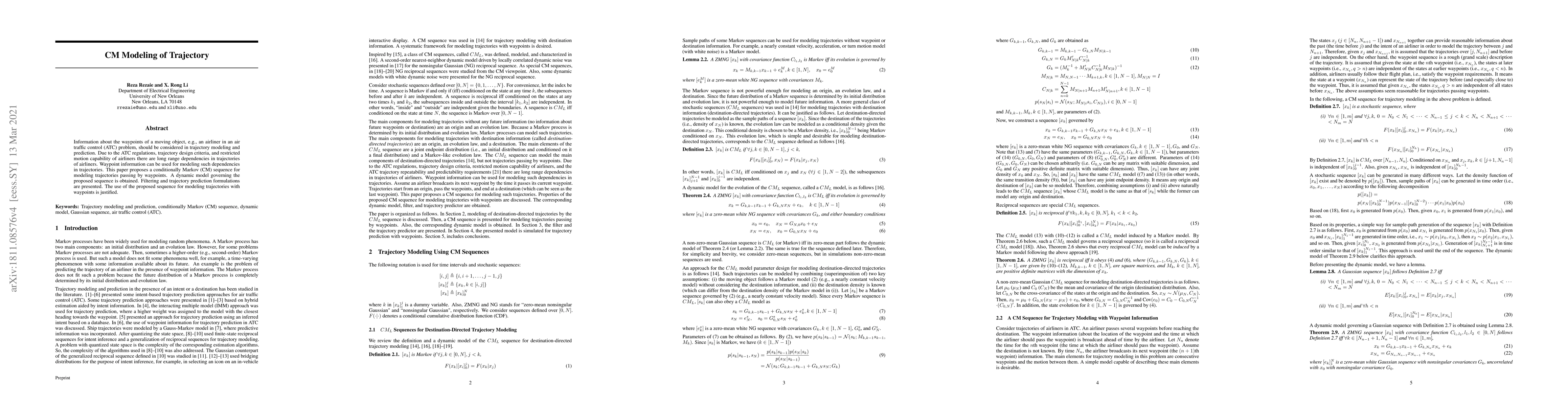 This paper proposes a conditionally Markov (CM) sequence for modeling and predicting the trajectories of airliners in air traffic control, incorporating waypoint information to account for long-range dependencies. The dynamic model, filtering, and prediction formulations are developed, demonstrating the effectiveness of using waypoints in trajectory modeling.