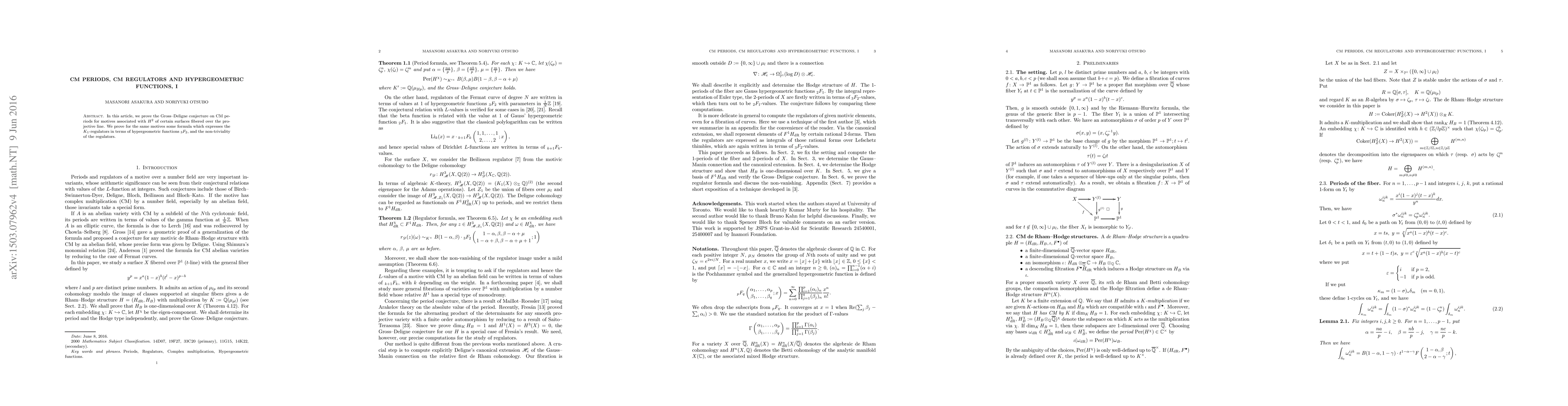 This paper investigates the second cohomology of surfaces with complex multiplication by a cyclotomic field, verifying the Gross-Deligne conjecture. It expresses CM periods using gamma function values and demonstrates the non-vanishing of regulators associated with $K_1$-elements through hypergeometric functions ${}_3F_2$.