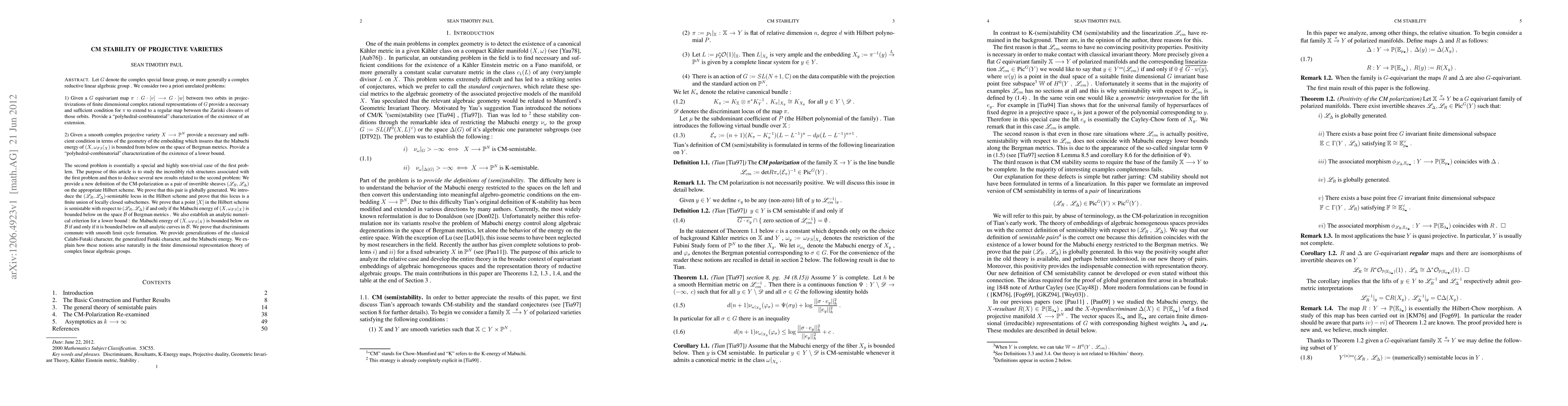 We develop the connection between equivariant completions of algebraic homogeneous spaces of reductive groups and lower bounds for the Mabuchi energy of a polarized manifold over the space of Bergman metrics. We provide a new definition of Tian's CM Polarization and discuss its properties.