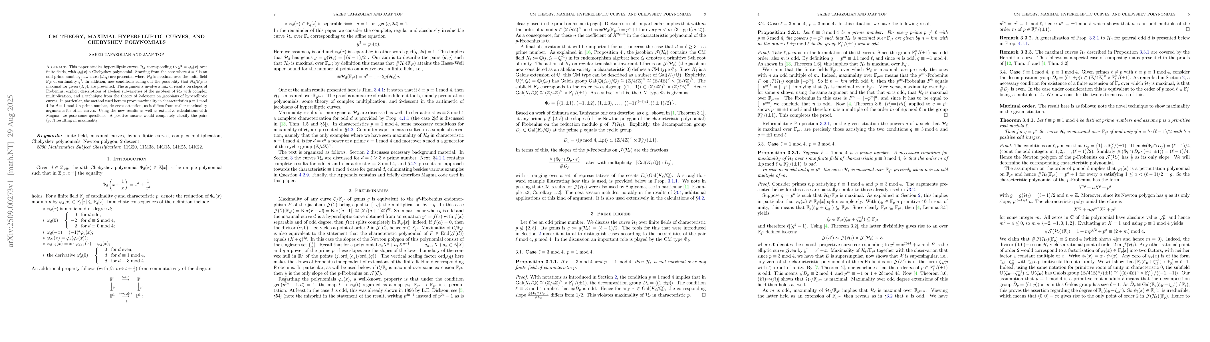 This paper studies hyperelliptic curves $\cH_d$ corresponding to $y^2=\varphi_d(x)$ over finite fields, with $\varphi_d(x)$ a Chebyshev polynomial. Starting from the case where $d=\ell$ is an odd prime number, new cases $(d,q)$ are presented where $\cH_d$ is maximal over the finite field $\FF_{q^2}$ of cardinality $q^2$. In addition, new conditions ruling out the possibility that $\cH_d/\FF_{q^2}$ is maximal for given $(d,q)$, are presented. The arguments involve a mix of results on slopes of Frobenius, explicit descriptions of abelian subvarieties of the jacobian of $\cH_d$ with complex multiplication, and a technique from the theory of $2$-descent on jacobians of hyperelliptic curves. In particular, the method used here to prove maximality in characteristics $p\equiv 1\bmod 4$ for $d\equiv 1\bmod 4$ a prime number, deserves attention, as it differs from earlier maximality arguments for other curves. Using the new results as well as extensive calculations with Magma, we pose some questions. A positive answer would completely classify the pairs $(q,d)$ resulting in maximality.