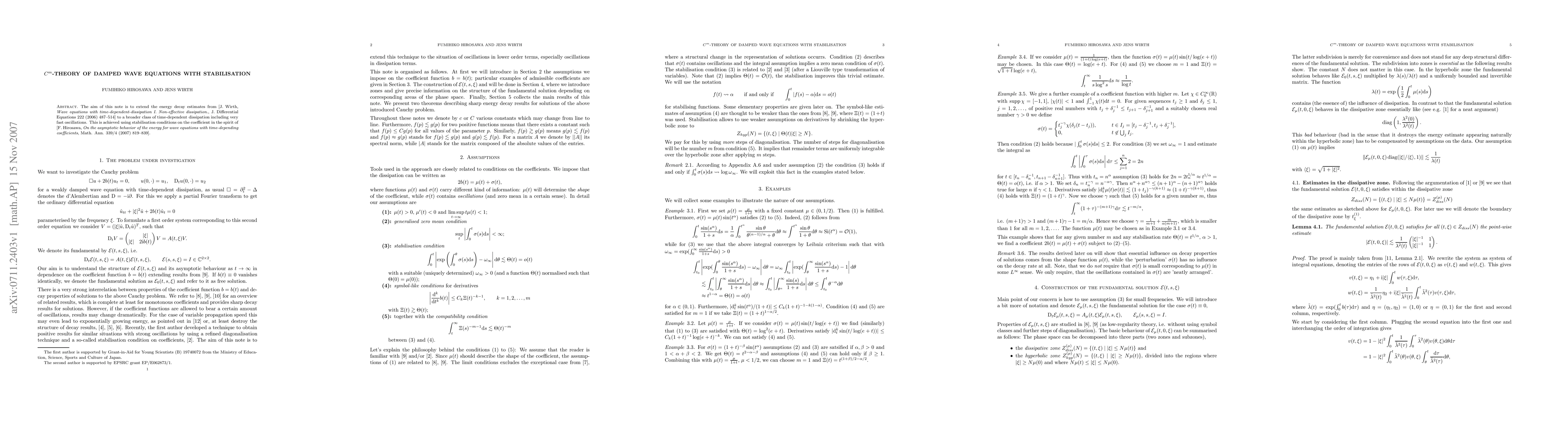 The aim of this note is to extend the energy decay estimates from [J. Wirth, J. Differential Equations 222 (2006) 487--514] to a broader class of time-dependent dissipation including very fast oscillations. This is achieved using stabilisation conditions on the coefficient in the spirit of [F. Hirosawa, Math. Ann. 339/4 (2007) 819--839].