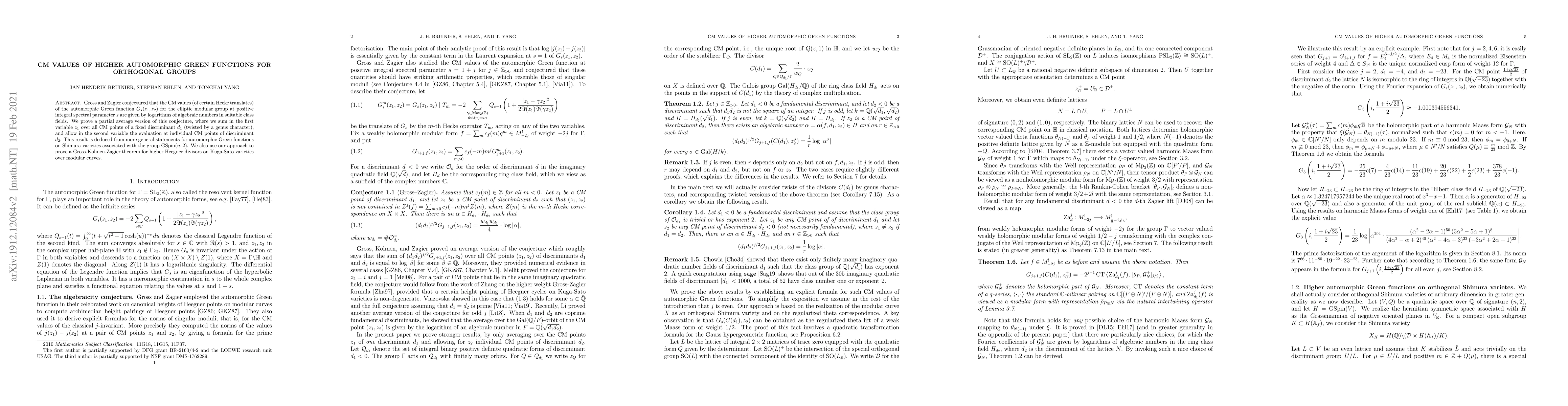 This paper proves a partial average version of Gross and Zagier's conjecture regarding the CM values of automorphic Green functions for orthogonal groups, extending the result to Shimura varieties associated with $\mathrm{GSpin}(n,2)$. Additionally, the authors apply their approach to establish a Gross-Kohnen-Zagier theorem for higher Heegner divisors on Kuga-Sato varieties.