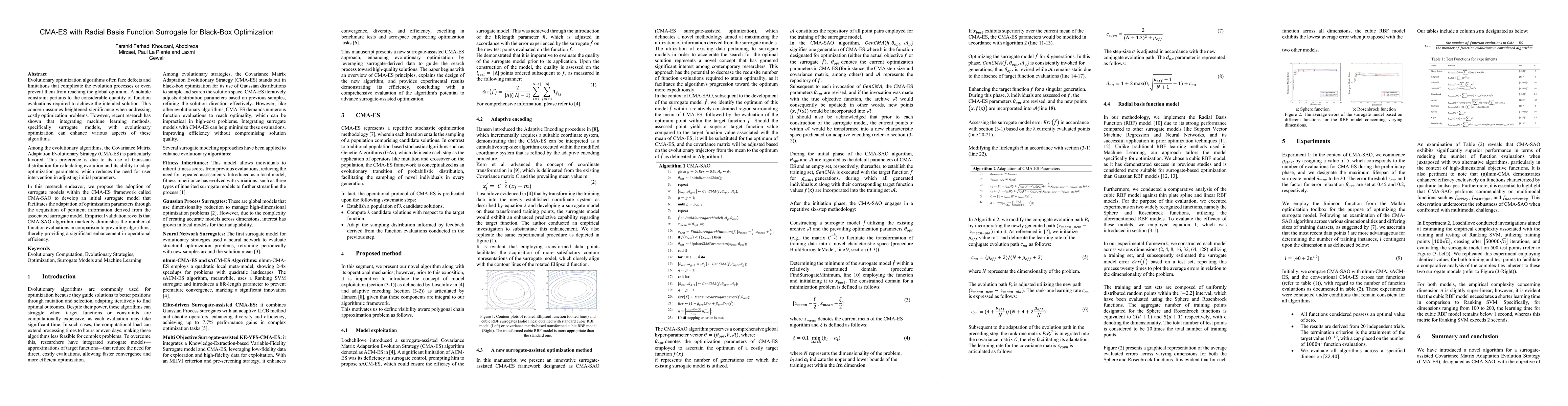 The research proposes CMA-SAO, an adaptation of CMA-ES that incorporates a Radial Basis Function (RBF) surrogate model to optimize function evaluations in black-box optimization problems.