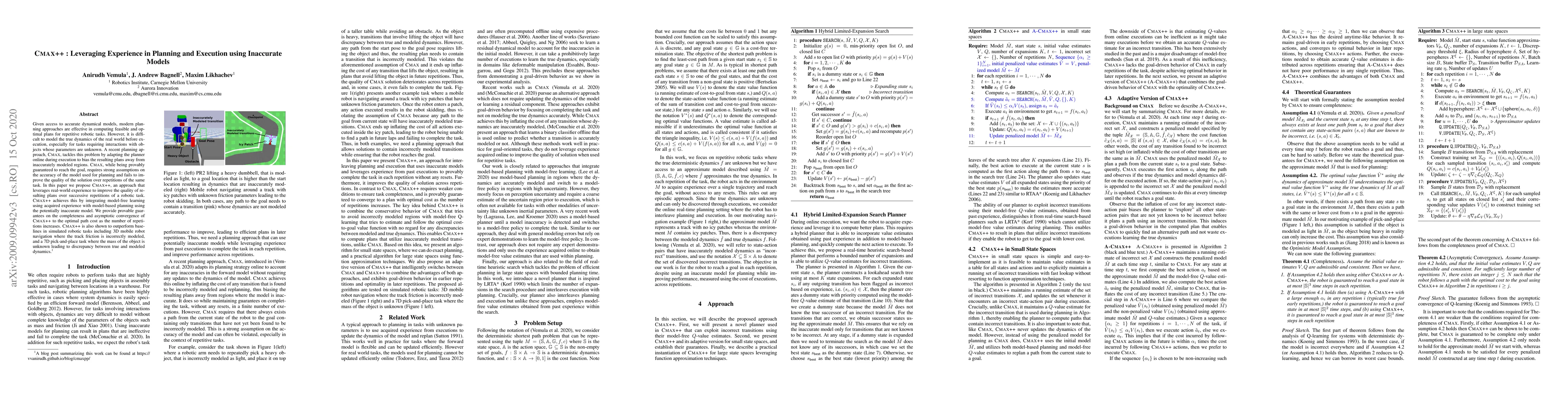 CMAX++ enhances CMAX by integrating model-free learning with model-based planning to improve plan quality over repeated tasks despite inaccurate models. It provides guarantees on completeness and asymptotic convergence, outperforming baselines in simulated tasks with incorrect dynamics.