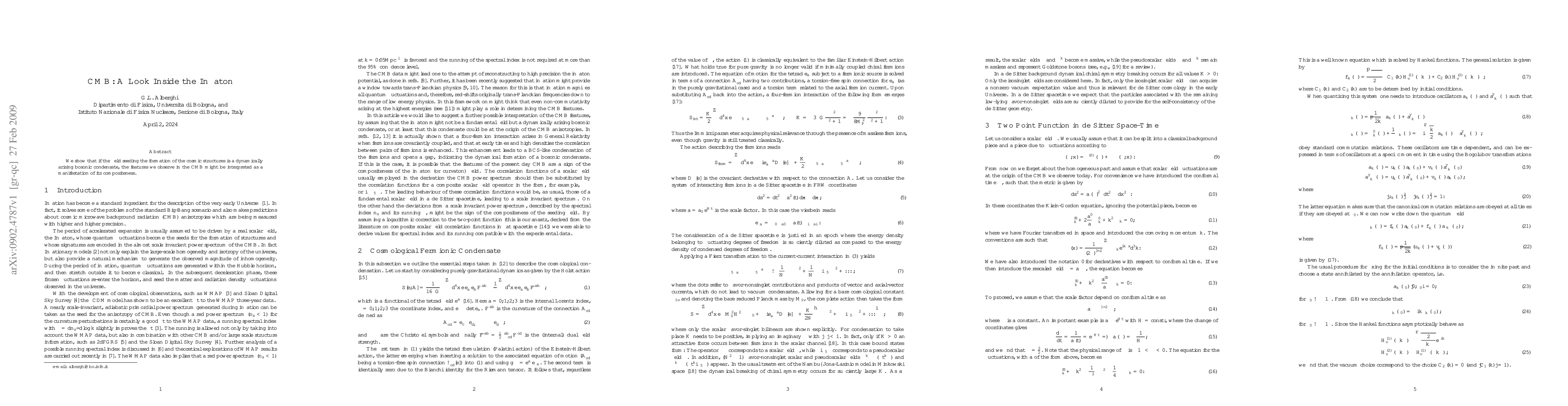 We show that if the field seeding the formation of the cosmic structures is a dynamically arising bosonic condensate, the features we observe in the CMB might be interpreted as a manifestation of its compositeness.