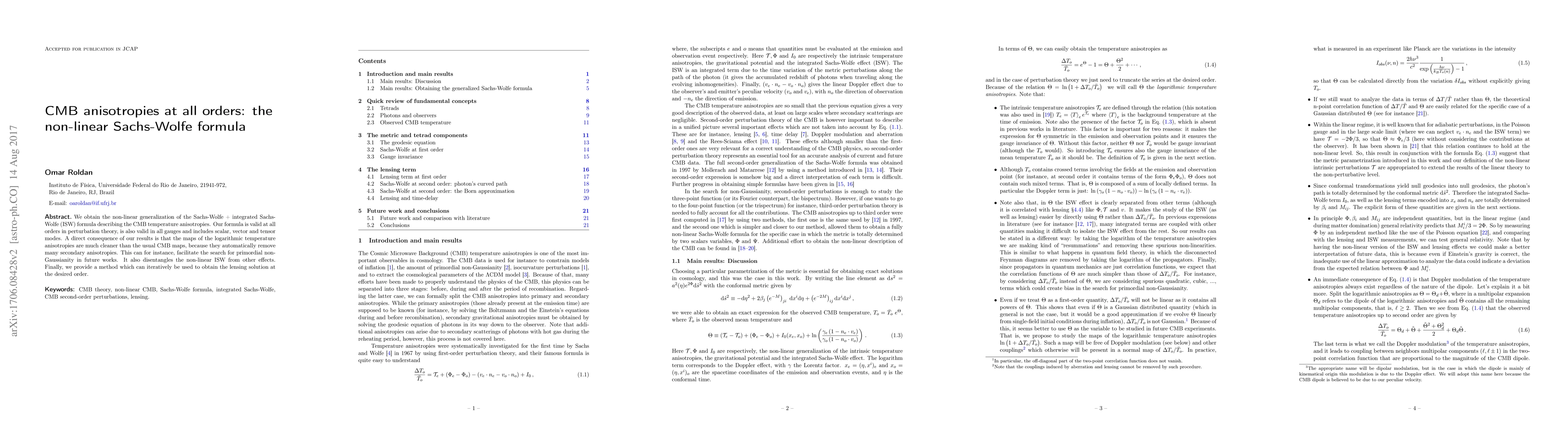 We obtain the non-linear generalization of the Sachs-Wolfe + integrated Sachs-Wolfe (ISW) formula describing the CMB temperature anisotropies. Our formula is valid at all orders in perturbation theory, is also valid in all gauges and includes scalar, vector and tensor modes. A direct consequence of our results is that the maps of the logarithmic temperature anisotropies are much cleaner than the usual CMB maps, because they automatically remove many secondary anisotropies. This can for instance, facilitate the search for primordial non-Gaussianity in future works. It also disentangles the non-linear ISW from other effects. Finally, we provide a method which can iteratively be used to obtain the lensing solution at the desired order.