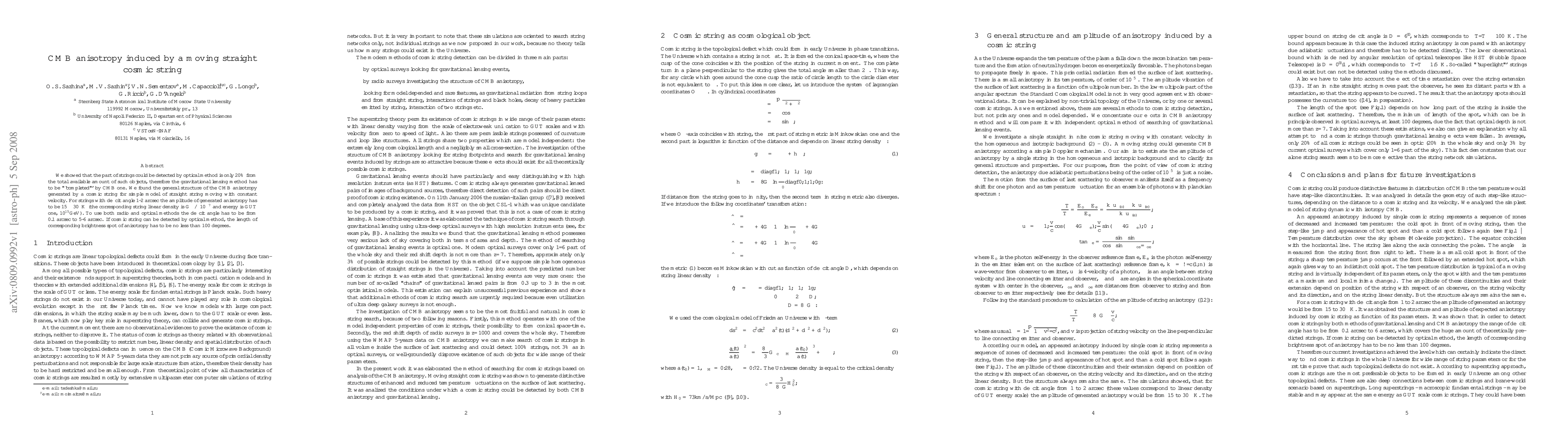 Researchers found that cosmic strings could induce CMB anisotropy with amplitudes as low as 15-30 muK, detectable only with a combination of CMB and optical methods, requiring string linear densities of ~10^-7 and energies of 10^15 GeV.