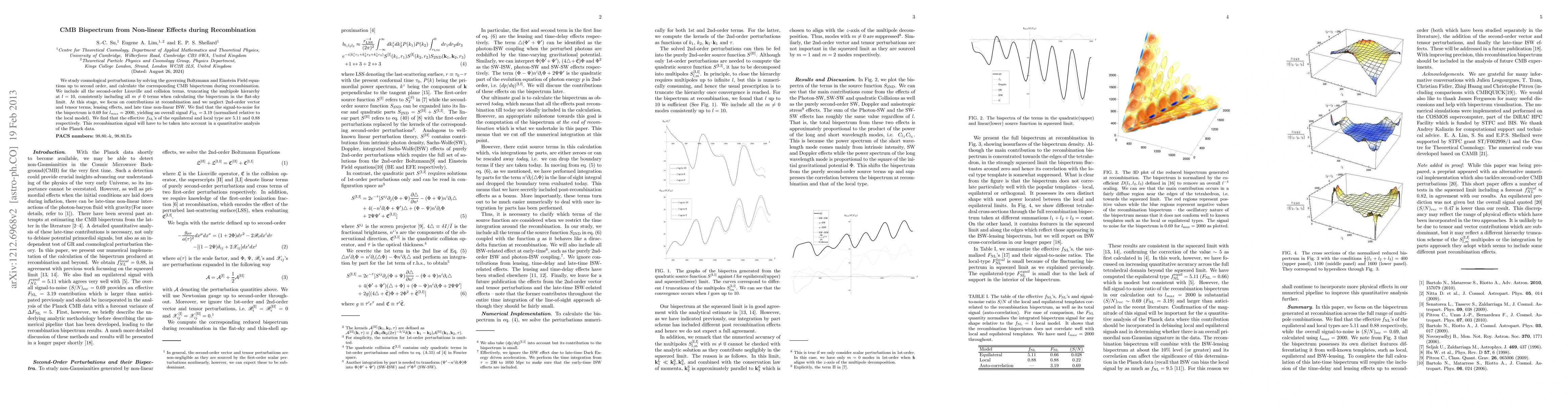 This research paper calculates the CMB bispectrum from non-linear effects during recombination, finding a signal-to-noise ratio of 0.69 with an overall signal of $F_{ m NL} = 3.19$, indicating that these effects must be considered in analyzing Planck data.