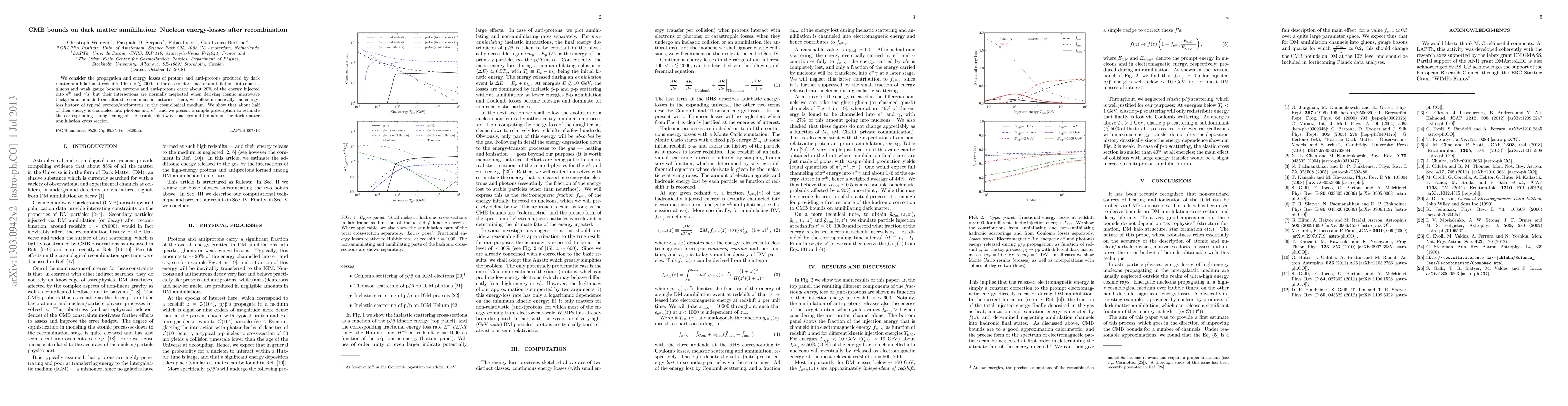 This paper estimates the impact of dark matter annihilation on cosmic microwave background bounds, considering energy losses of protons and antiprotons in the cosmological medium.