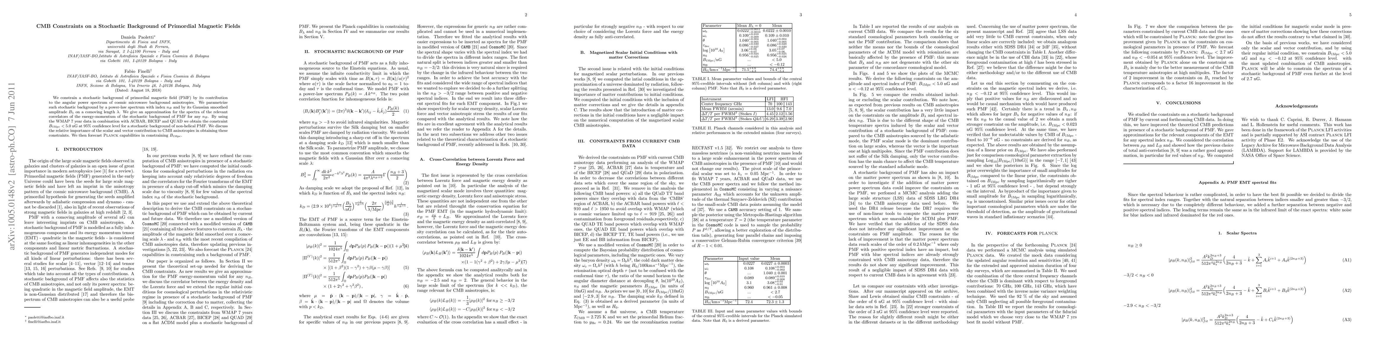 We constrain a stochastic background of primordial magnetic field (PMF) by its contribution to the angular power spectrum of cosmic microwave background anisotropies. We parametrize such stochastic background by a power-law spectrum with index $n_B$ and by its Gaussian smoothed amplitude $B_\lambda$ on a comoving length $\lambda$. We give an approximation for the spectra of the relevant correlators of the energy-momentum of the stochastic background of PMF for any $n_B$. By using the WMAP 7 year data in combination with ACBAR, BICEP and QUAD we obtain the constraint $B_{1 {\rm Mpc}} < 5.0$ nG at 95% confidence level for a stochastic background of non-helical PMF. We discuss the relative importance of the scalar and vector contribution to CMB anisotropies in obtaining these constraints. We then forecast {\sc Planck} capabilities in constraining $B_{1 {\rm Mpc}}$.