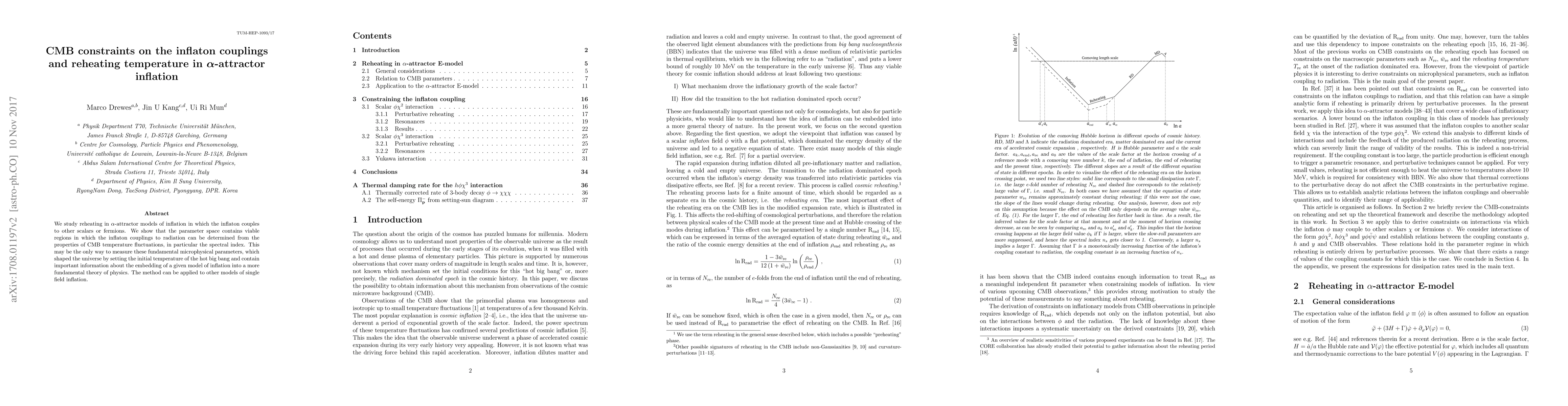 This paper investigates reheating in $\alpha$-attractor inflation models where the inflaton interacts with other scalars or fermions. It demonstrates that CMB temperature fluctuations, particularly the spectral index, can constrain the inflaton's coupling to radiation, providing a potential method to determine these fundamental parameters.
