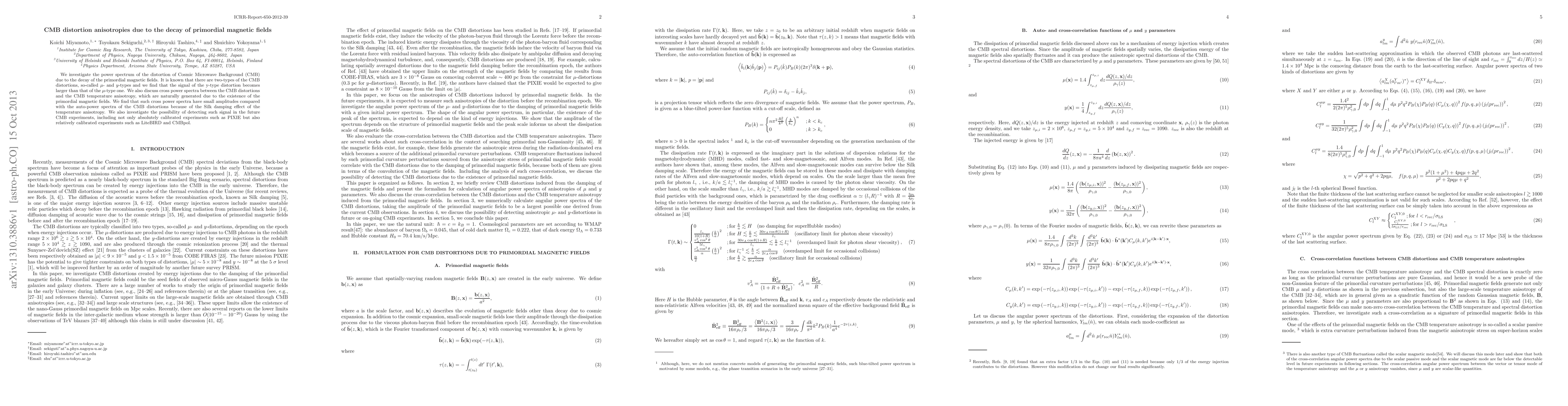 This paper examines the power spectrum of Cosmic Microwave Background (CMB) distortions caused by the decay of primordial magnetic fields, finding that y-type distortions are more significant than μ-type ones. It also explores cross power spectra between CMB distortions and temperature anisotropy, noting their small amplitudes due to Silk damping, and discusses potential future detection by experiments like PIXIE, LiteBIRD, and CMBpol.