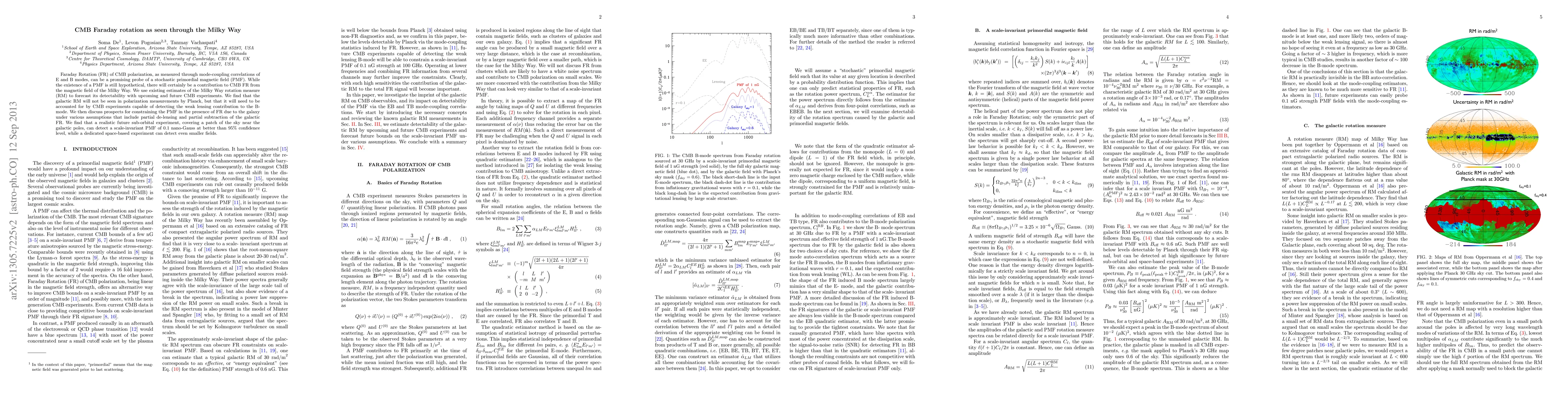 The paper presents a detailed analysis of Faraday rotation in CMB polarization, forecasting detectability of galactic and primordial magnetic fields using upcoming CMB experiments.