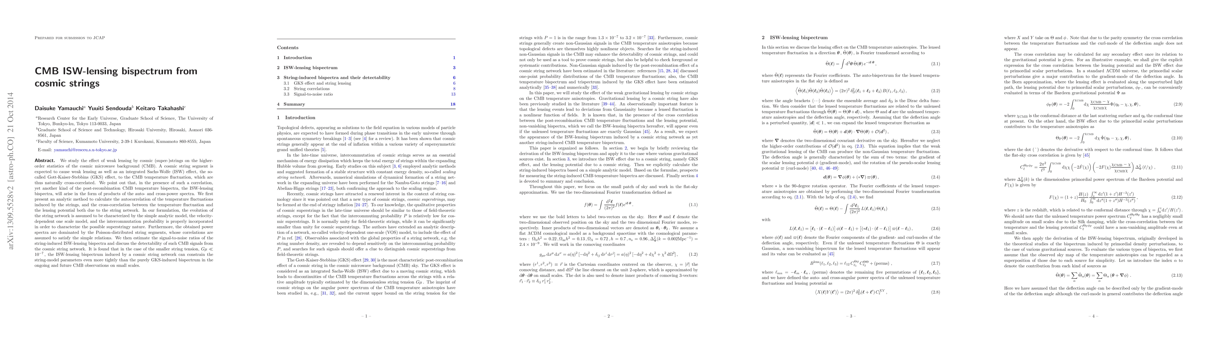 This paper investigates the influence of cosmic strings on the cosmic microwave background (CMB) via weak lensing and integrated Sachs-Wolfe effects, generating an ISW-lensing bispectrum. It presents an analytic method to calculate the correlations and power spectra from cosmic string networks, finding that smaller string tensions can lead to tighter constraints on string models through ISW-lensing bispectra compared to traditional methods.