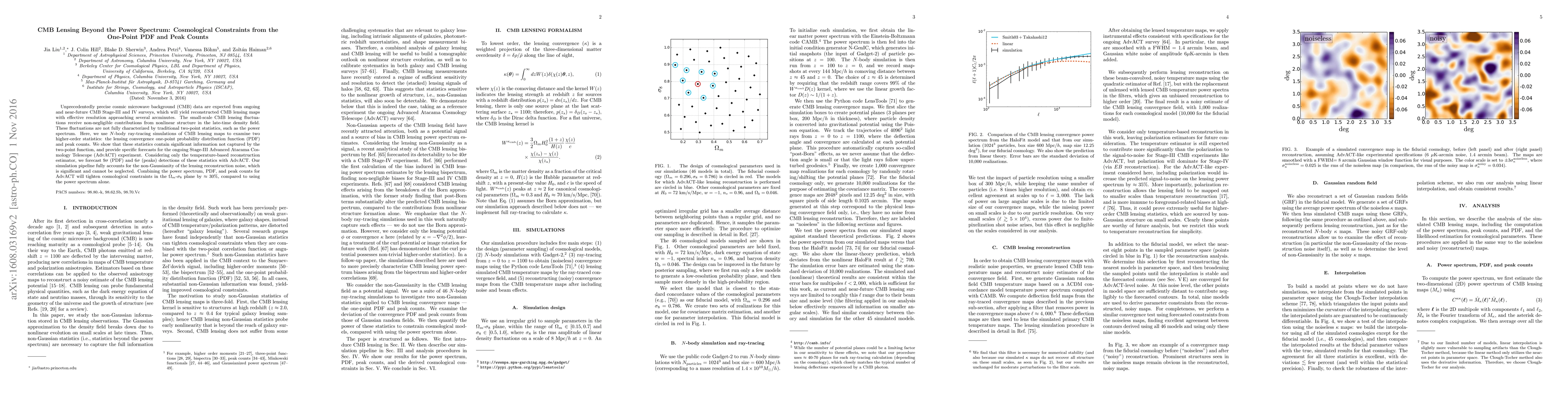 This paper explores the use of higher-order statistics, such as the one-point PDF and peak counts of CMB lensing, to extract additional cosmological information beyond traditional power spectrum analysis. Simulations predict significant detections of these statistics with the AdvACT experiment, which will enhance constraints on the $\Omega_m$-$\sigma_8$ plane by approximately 30% when combined with power spectrum data.
